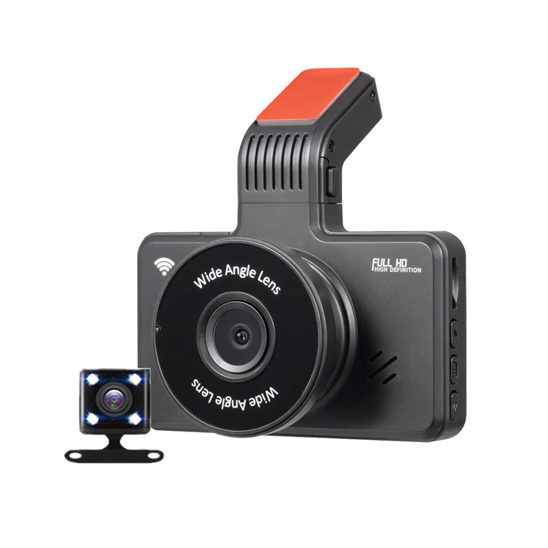 高清1080P前后录像带有前后摄像头,后摄像头安装到车牌位置,前后同时可监控录像,并带有倒车影像