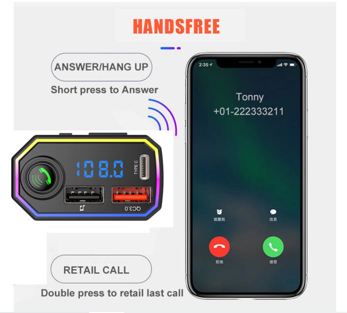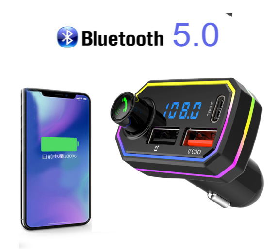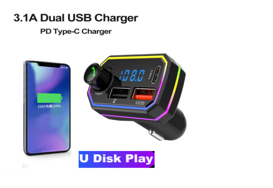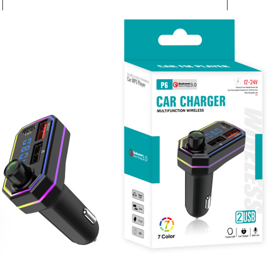 P6 자동차 MP3 국경 블루투스 핸즈프리 PD 빠른 충전 지원 TF USB 분위기 빛 FM 송신기 MP3 재생