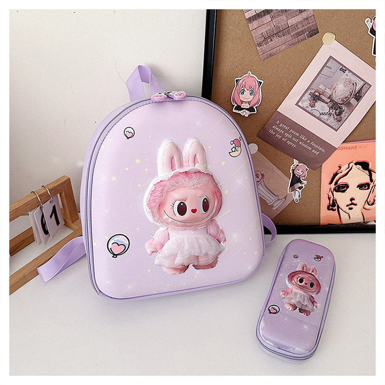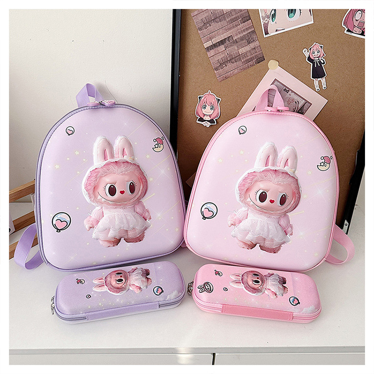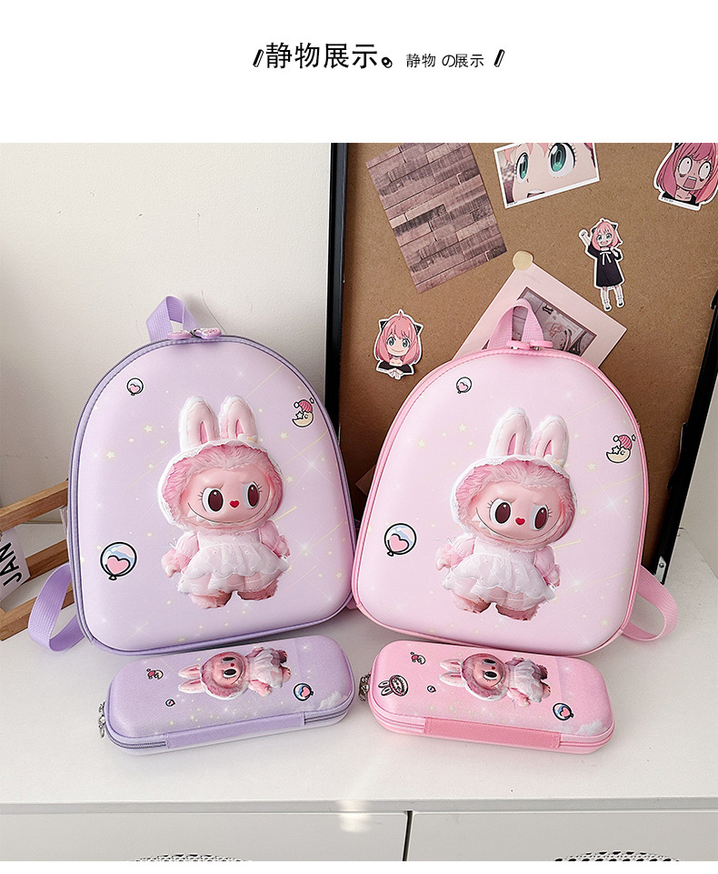 새로운 Labubu 어린이 Schoolbag 만화 EVA 하드 쉘 가방 Labubu 배낭 소년 소녀를위한 대용량 배낭