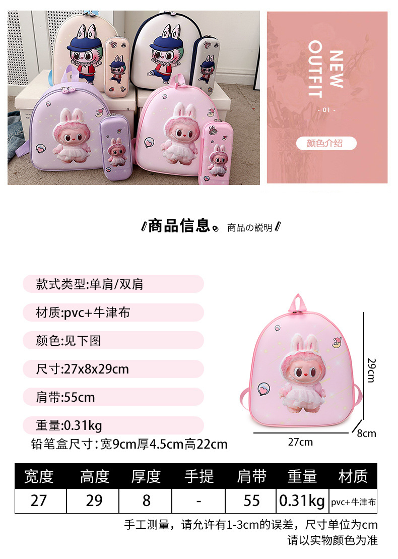 새로운 Labubu 어린이 Schoolbag 만화 EVA 하드 쉘 가방 Labubu 배낭 소년 소녀를위한 대용량 배낭스토어 가기