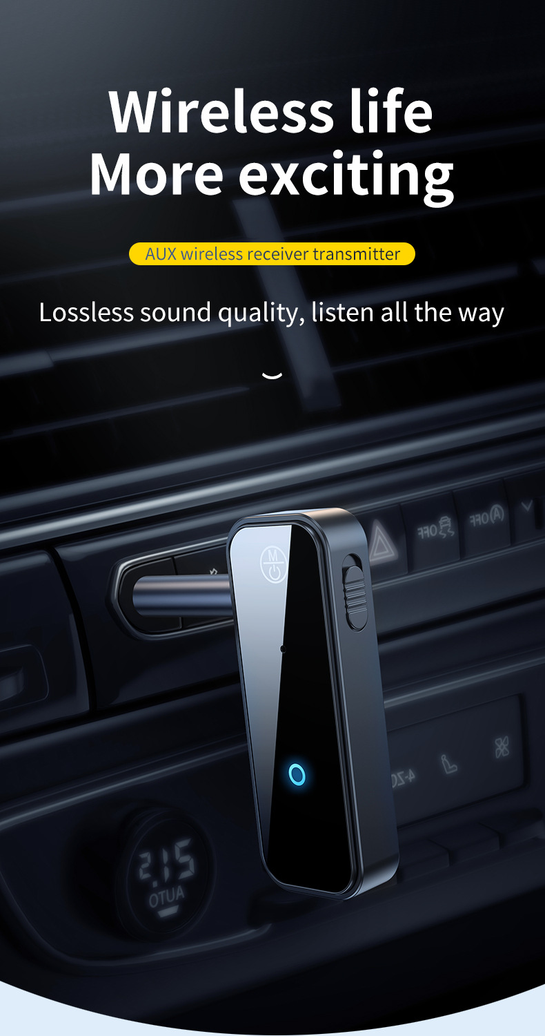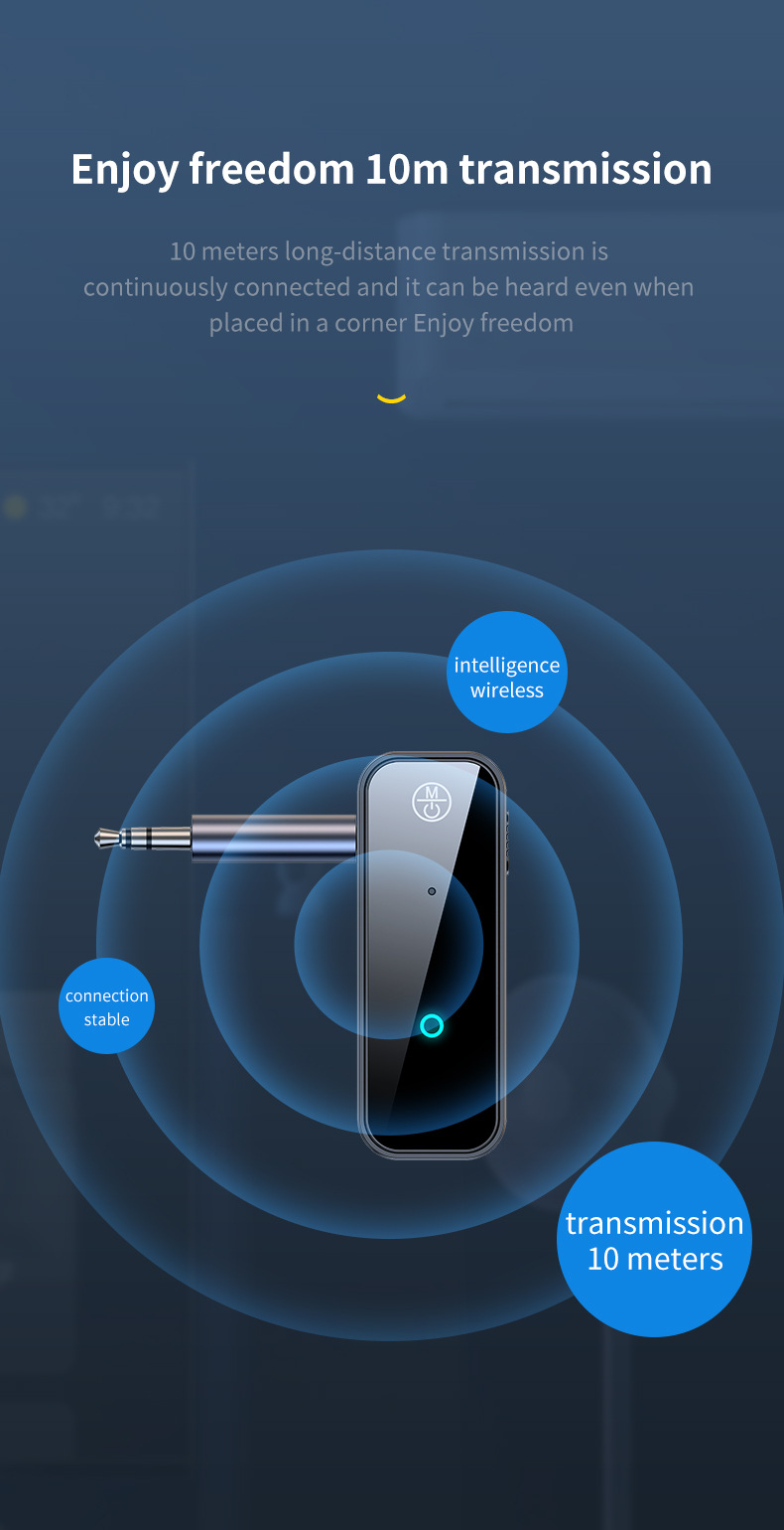 2. 把发射器插入手机或者MP3/MP4等音乐播放器的3.5mm耳机孔,