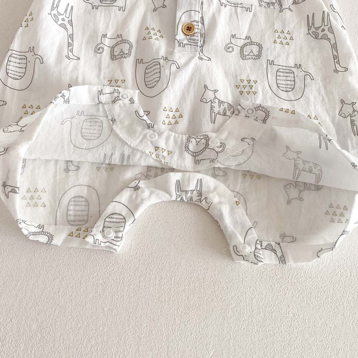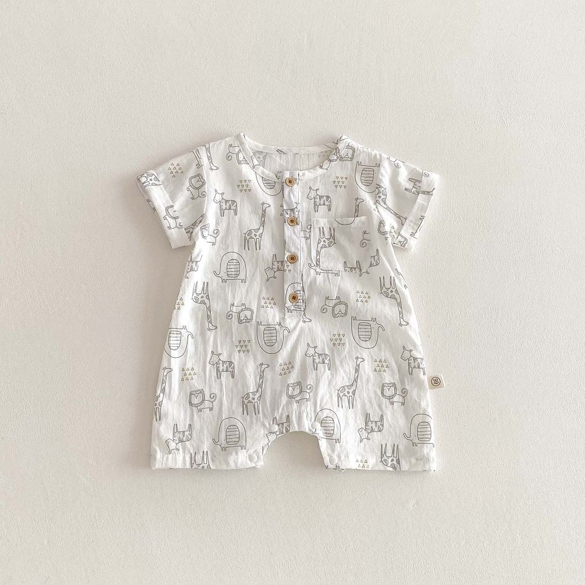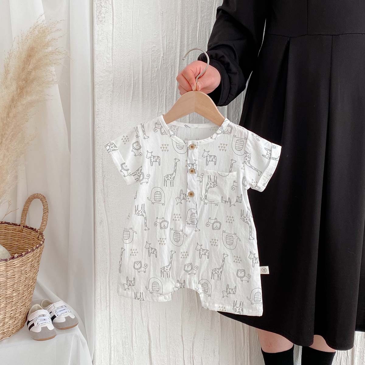 남자들의 여름 2025 새로운 도착 등반 세트 귀여운 만화 인쇄 반팔 면화 아기 옷 얇은