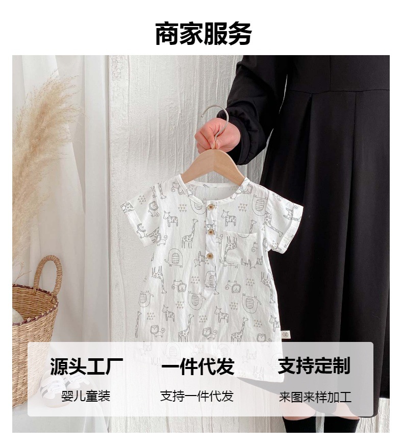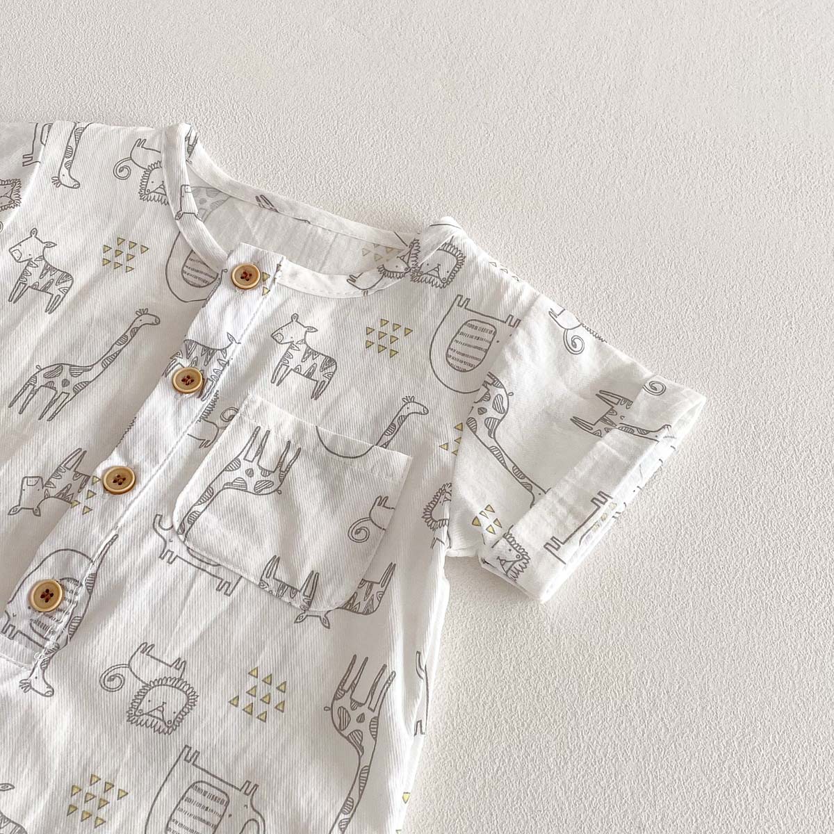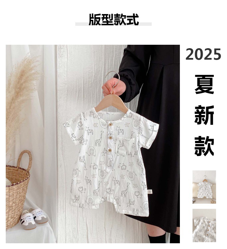 남자들의 여름 2025 새로운 도착 등반 세트 귀여운 만화 인쇄 반팔 면화 아기 옷 얇은스토어 가기