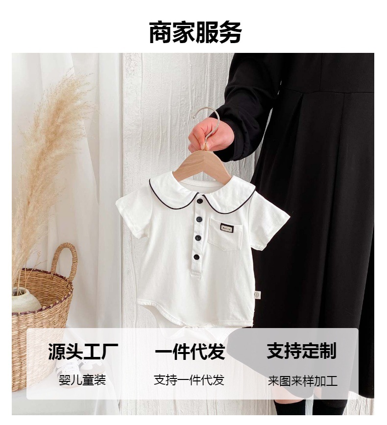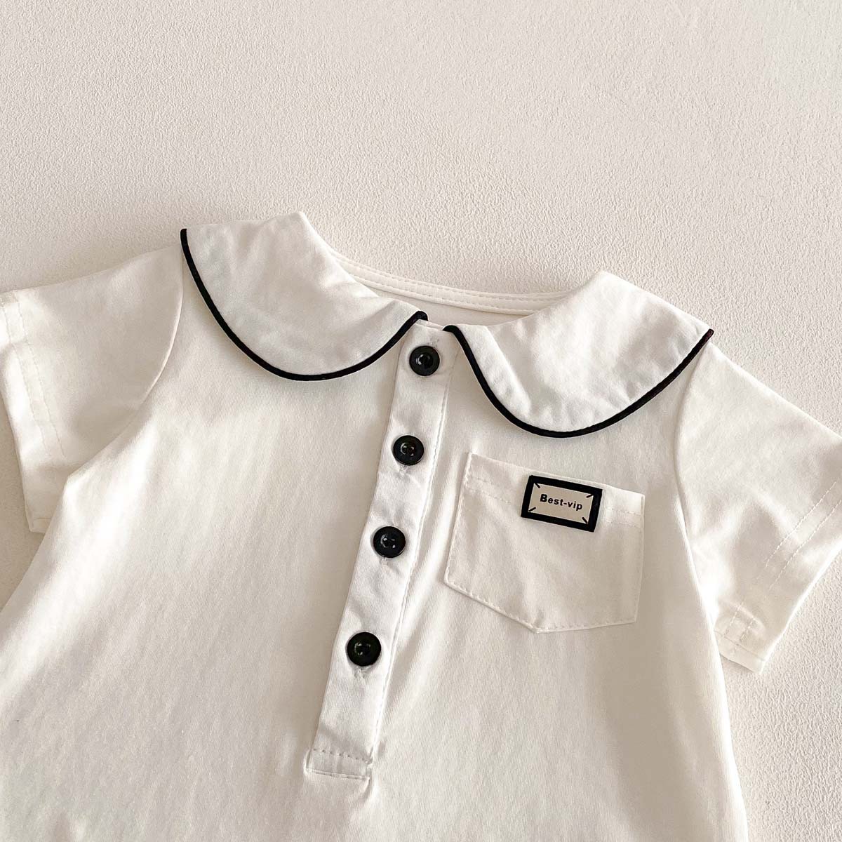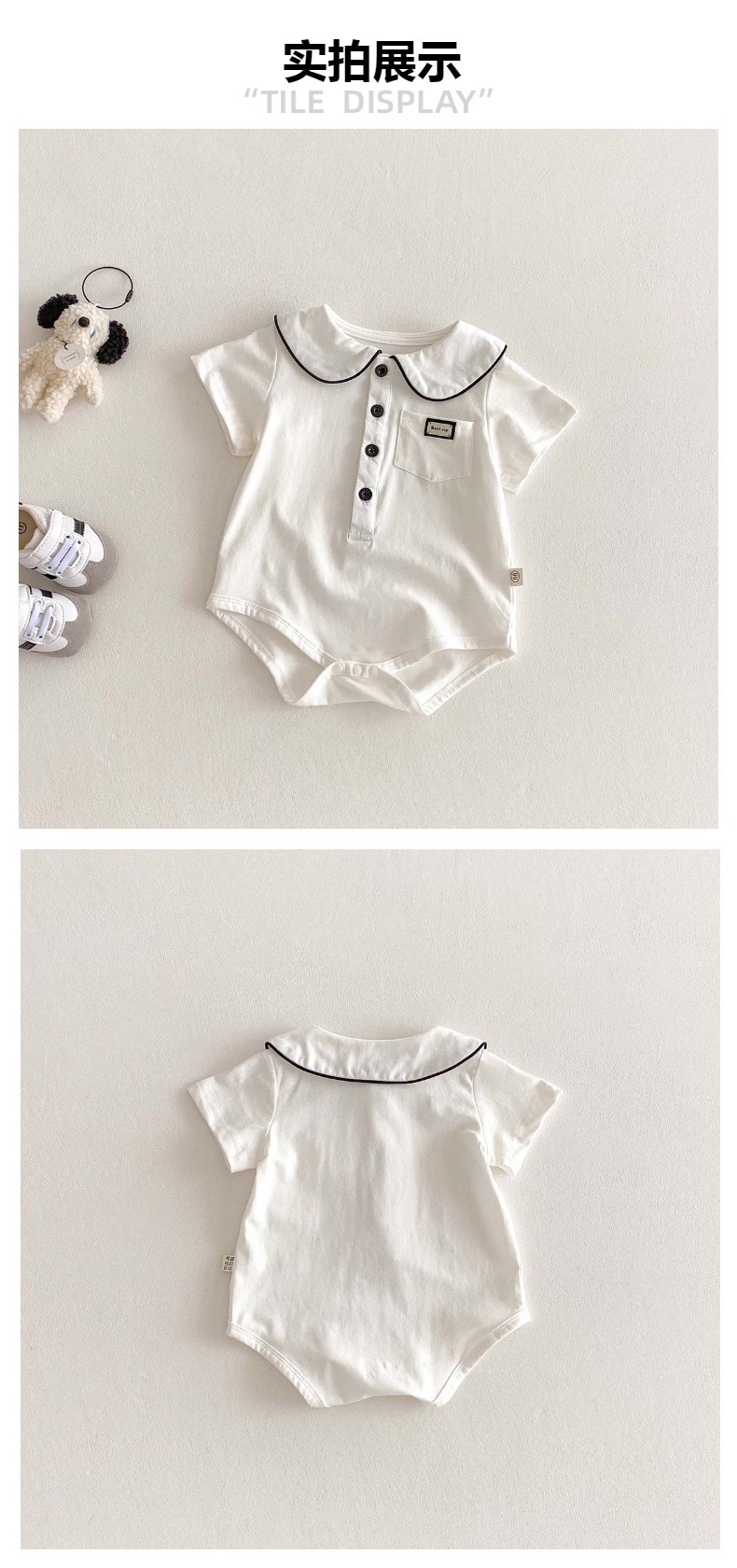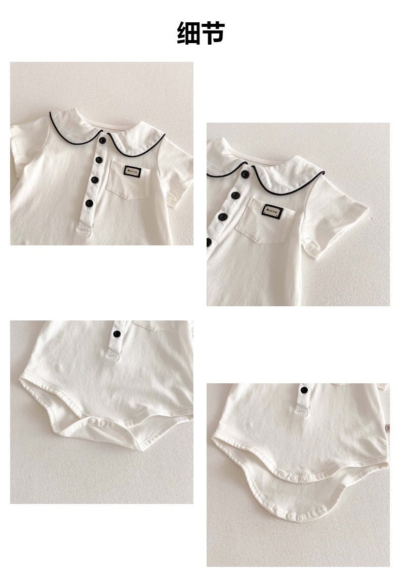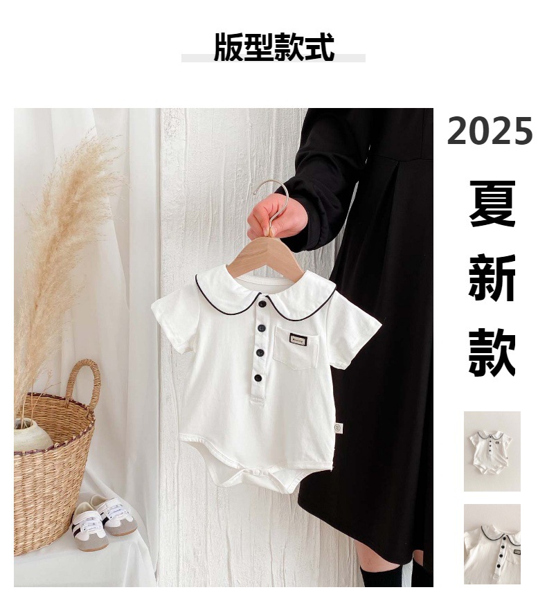 소년 소녀 아기를위한 여름 얇은 점프 수트 새로운 2025 아기 귀여운 인형 칼라 보름달 백일 짧은 소매 옷스토어 가기