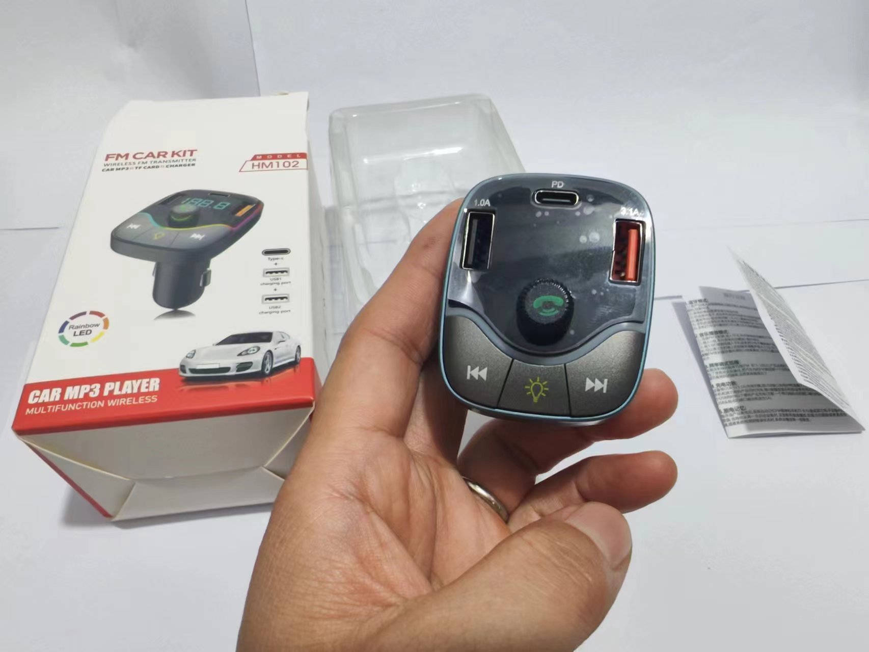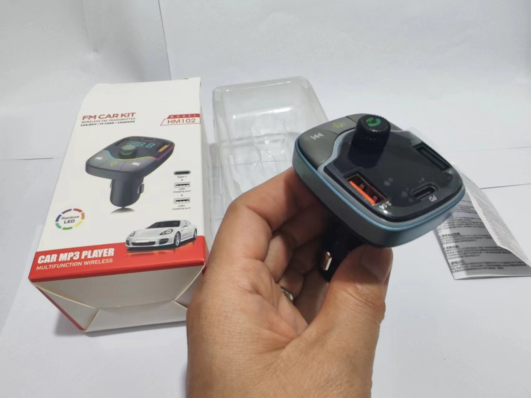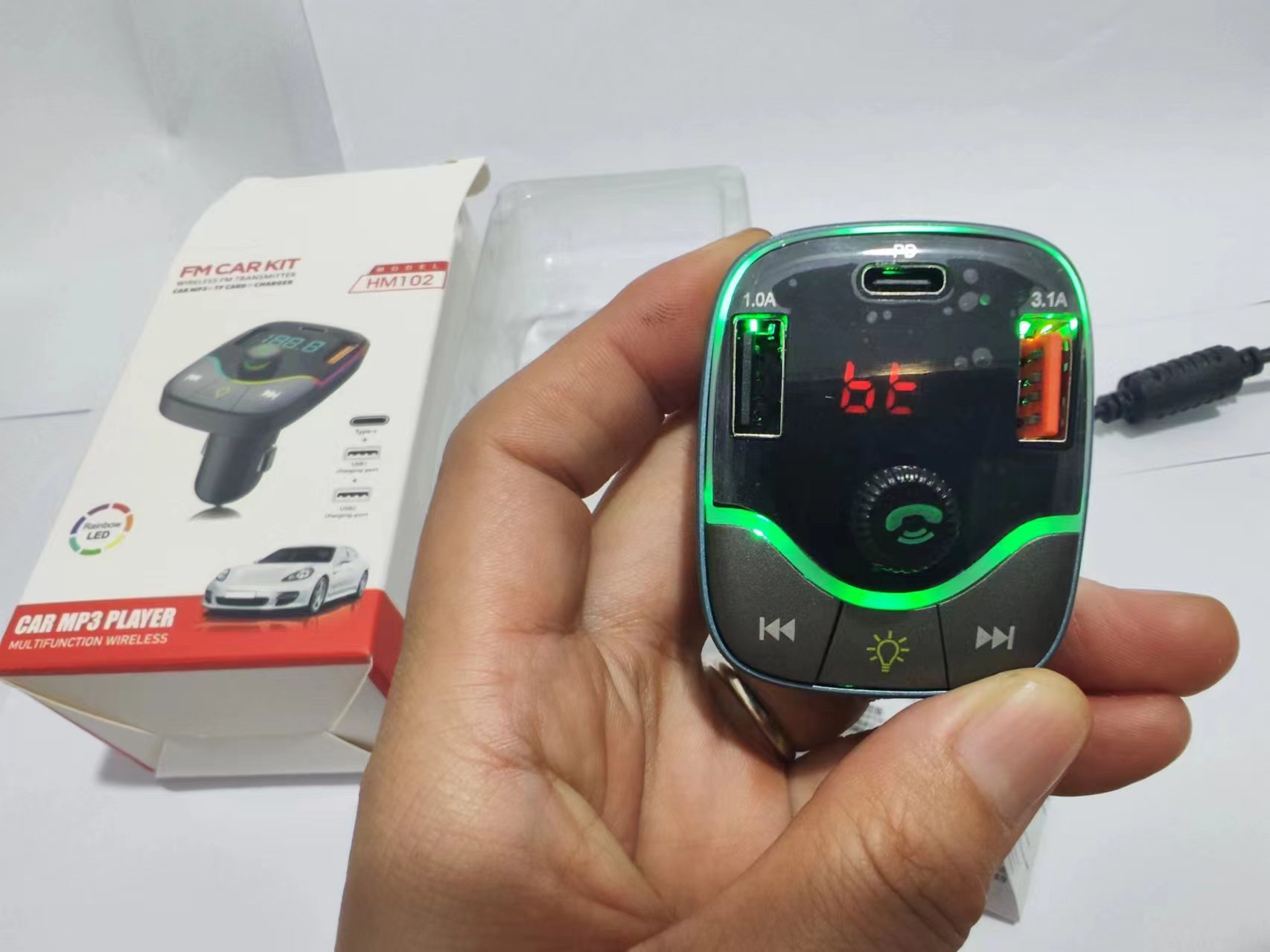 HM02 자동차 충전기 블루투스 MP3 플레이어 핸즈프리 전화 블루투스 송신기 자동차 담배 라이터 빠른 충전
