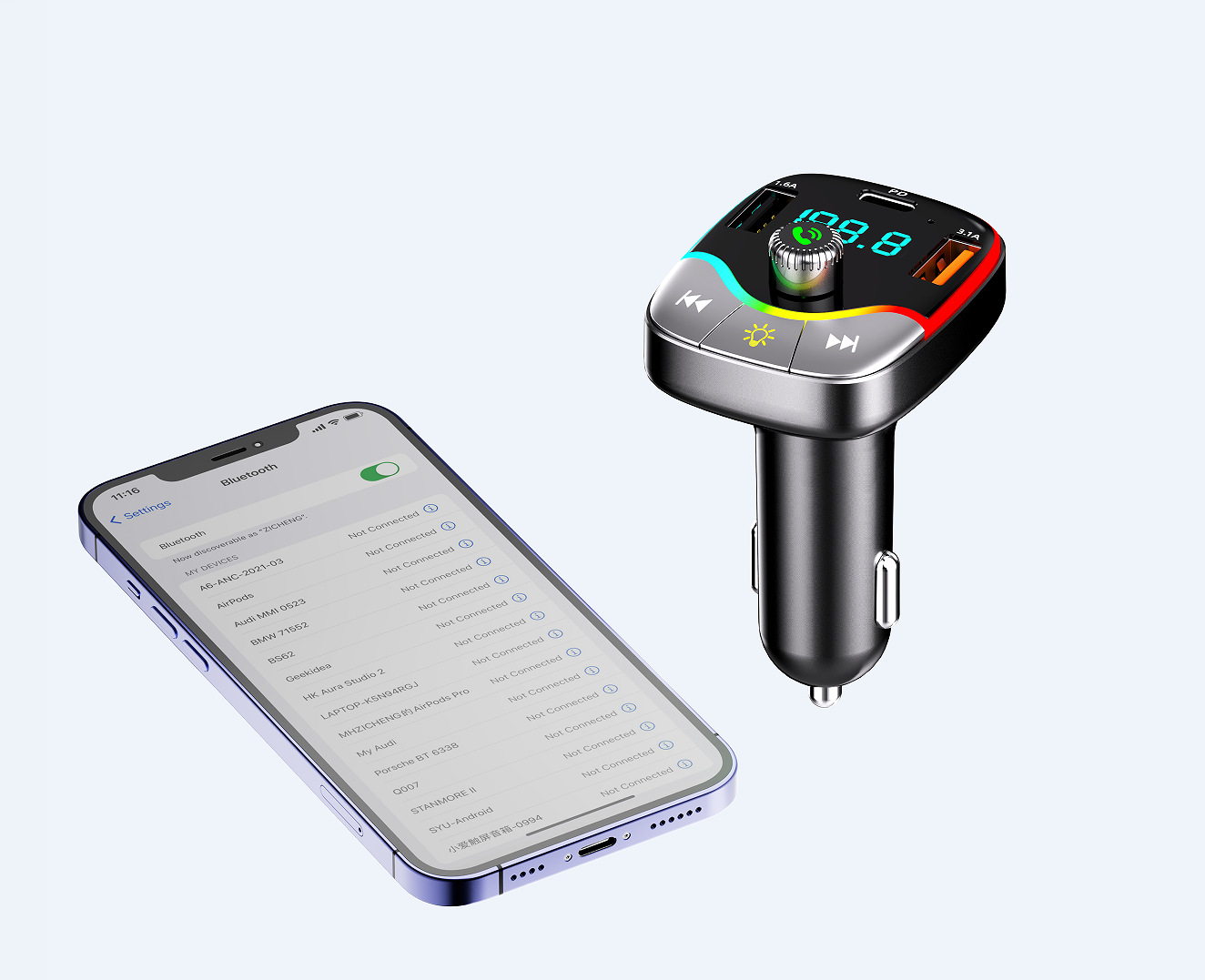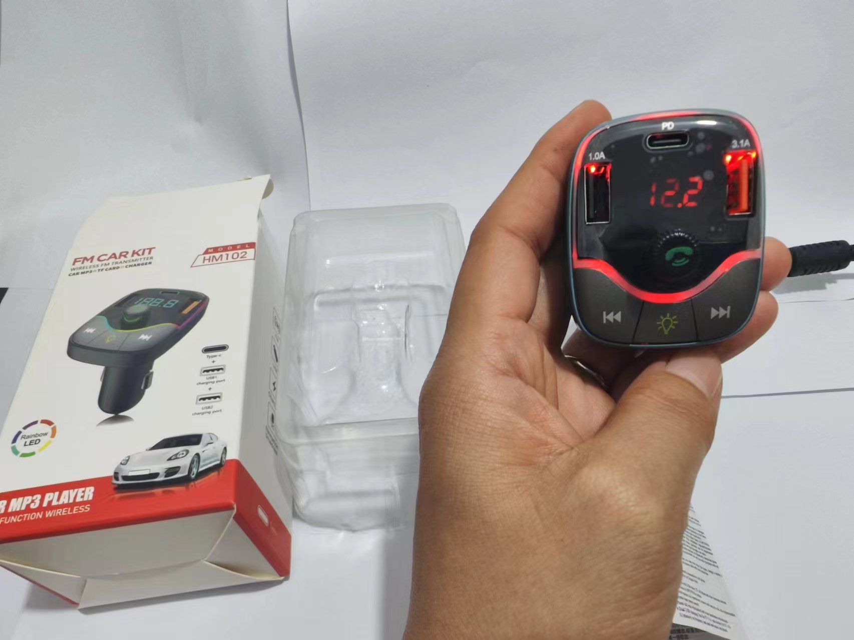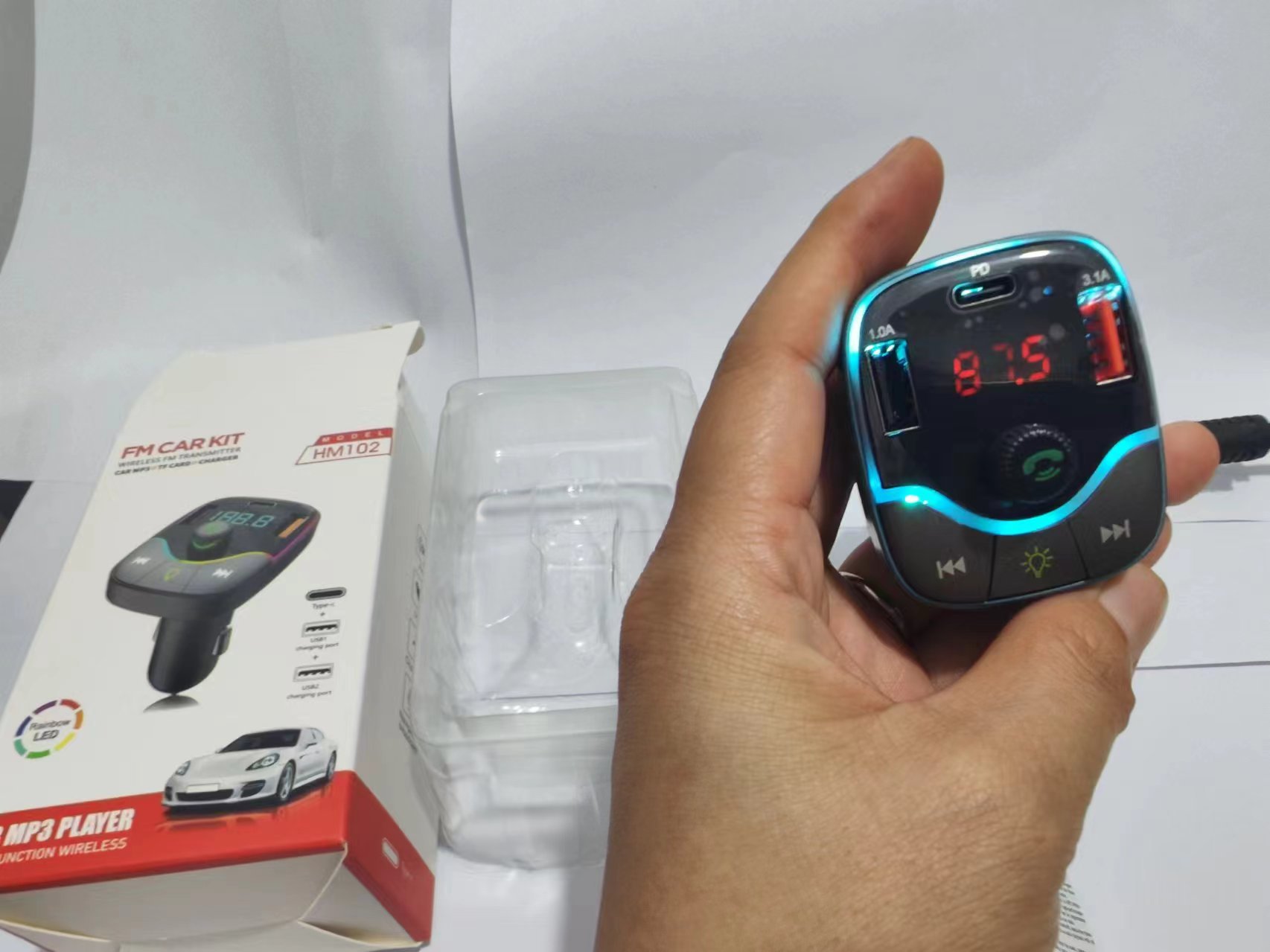 HM02 자동차 충전기 블루투스 MP3 플레이어 핸즈프리 전화 블루투스 송신기 자동차 담배 라이터 빠른 충전