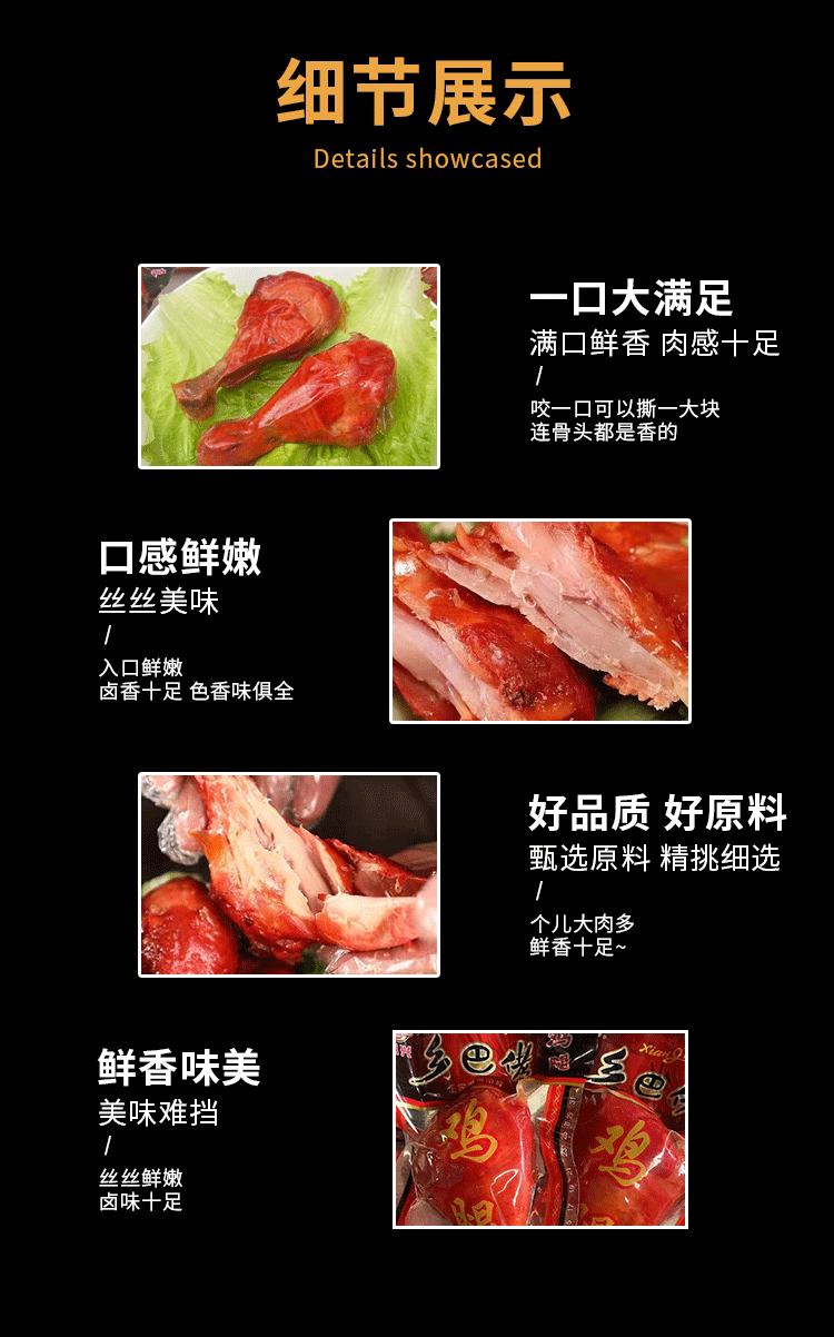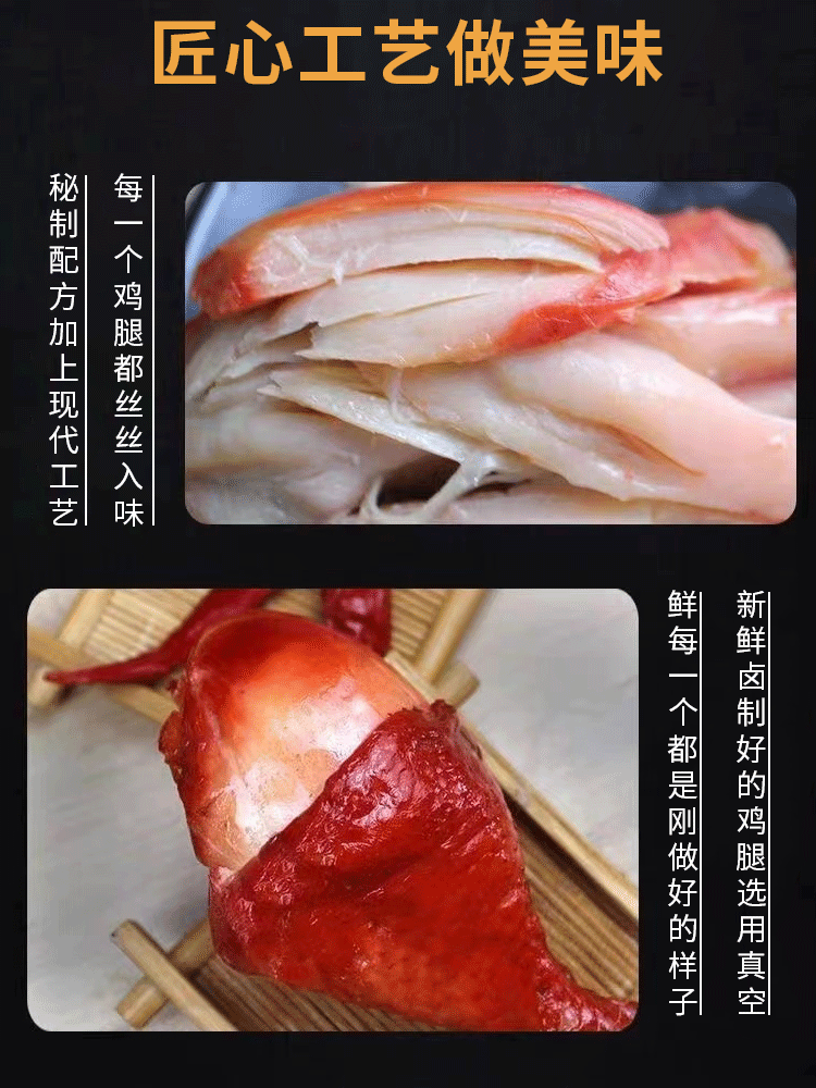 절인 맛을 곁들인 정통 힐빌리 치킨 다리 원저우 맛 치킨 간식 진공 포장 요리 식품 오픈 백