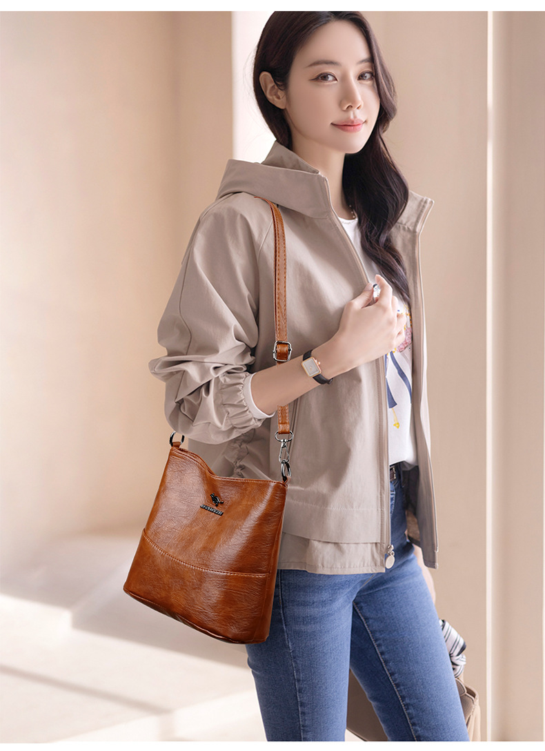 크로스-국경 새로운 인기있는 간단한 버킷 가방 패션 하이 엔드 센스 새로운 스티칭 와이드 어깨 스트랩 크로스 바디 백스토어 가기