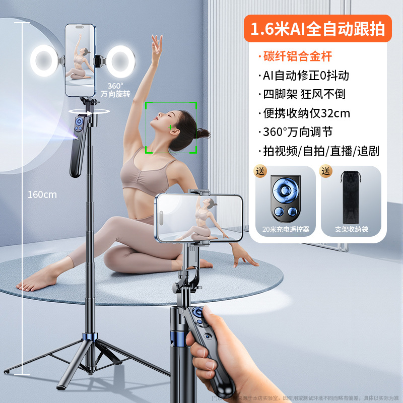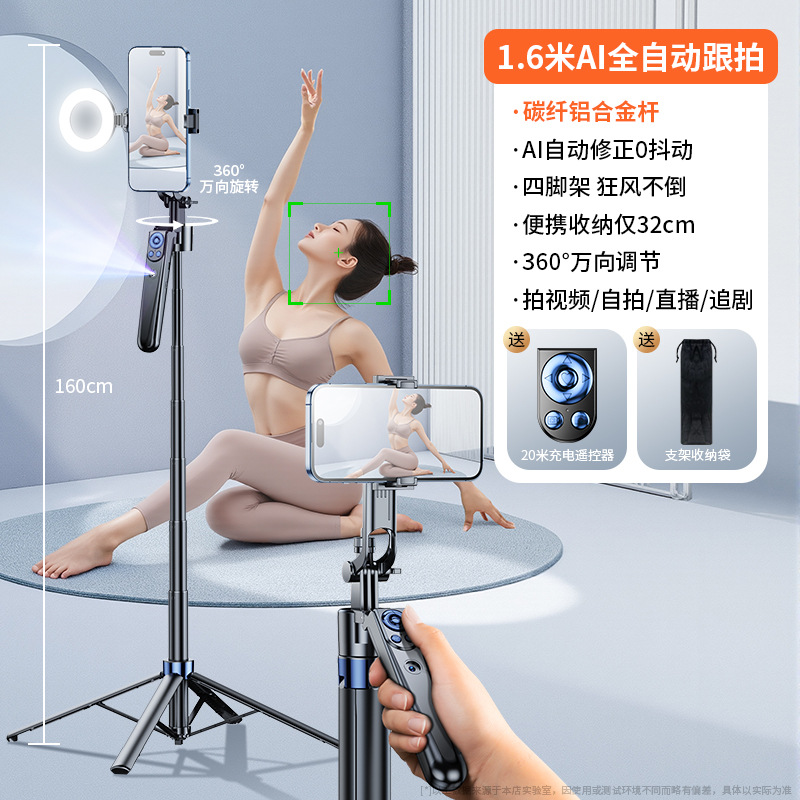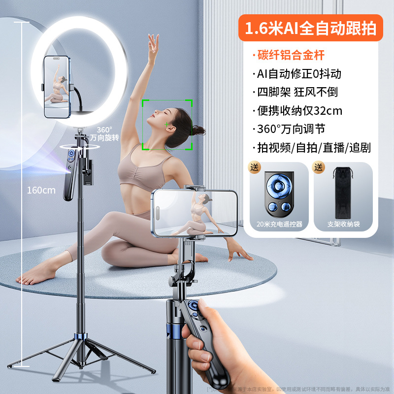 • 【 1.6m + 싱글 뷰티 램프】360°AI 후속 촬영*Douyin 원격 제어*제스처 제어