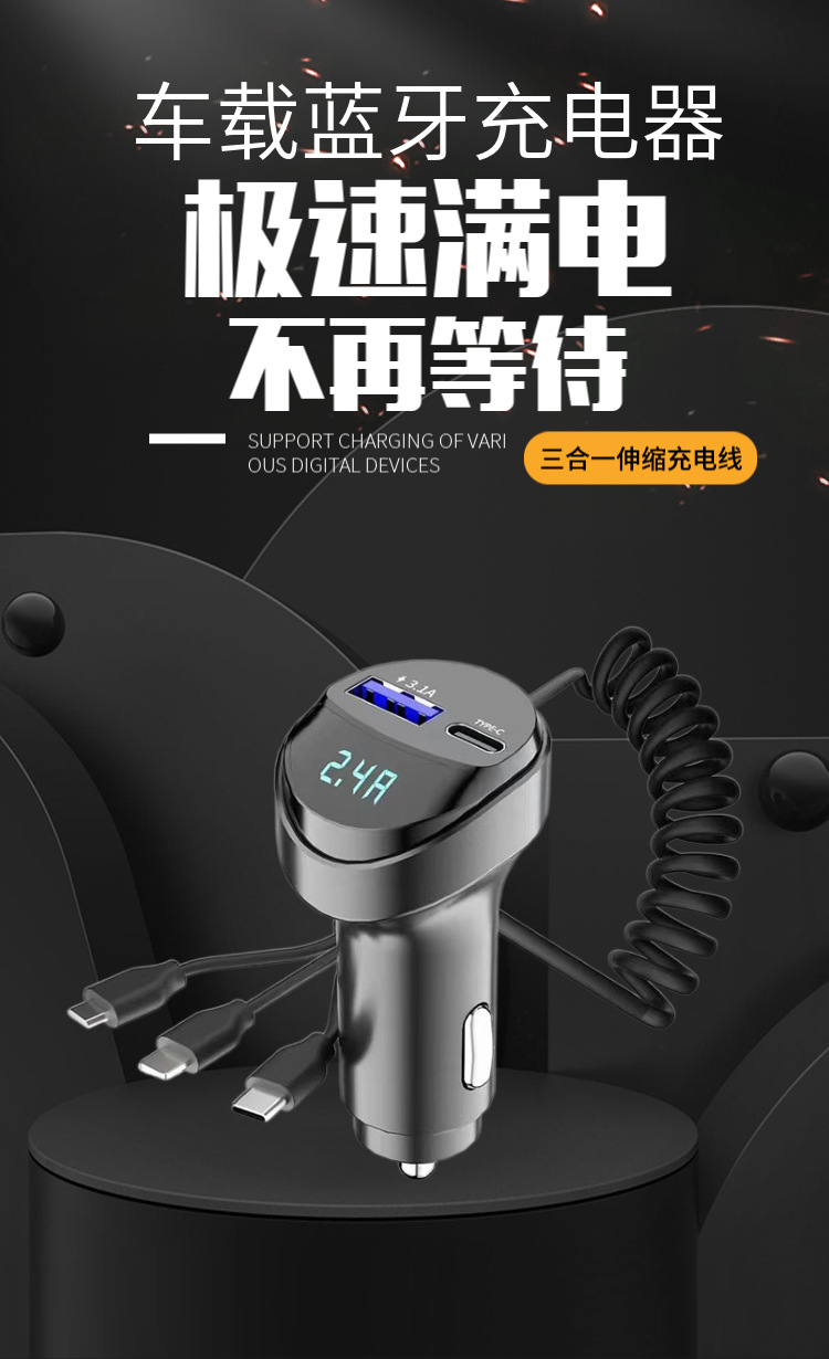 KC08 자동차 3 대 1 USB 텔레스코픽 충전 케이블 3.1A 자동차 휴대 전화 충전기 전압 디스플레이스토어 가기