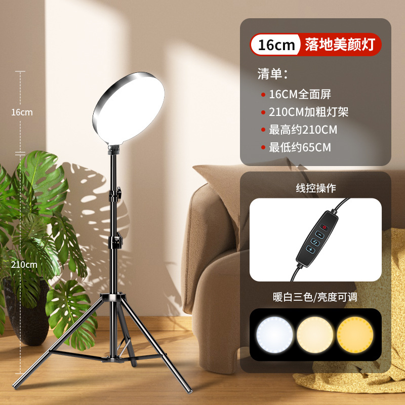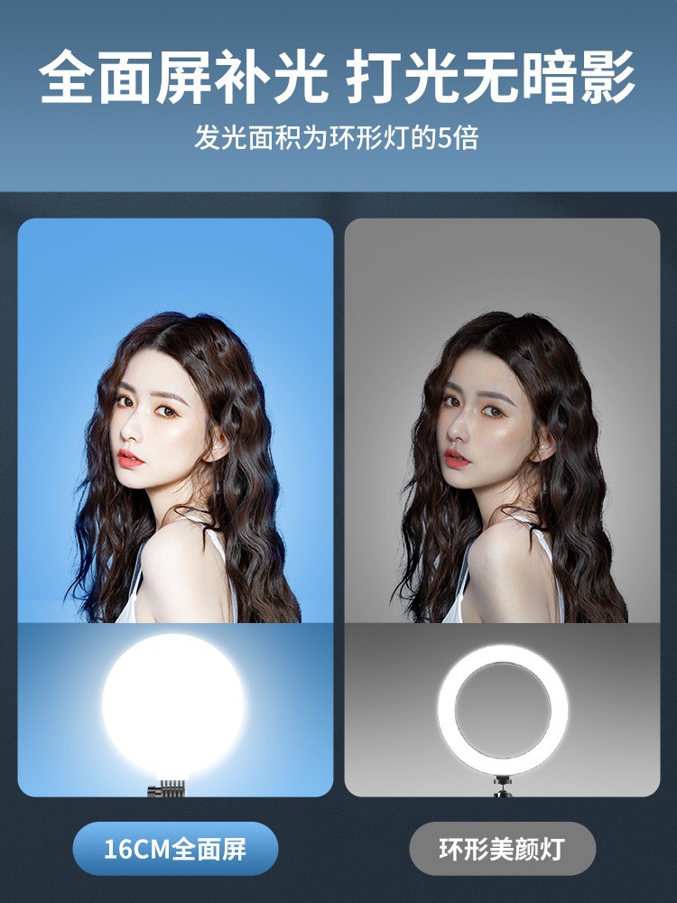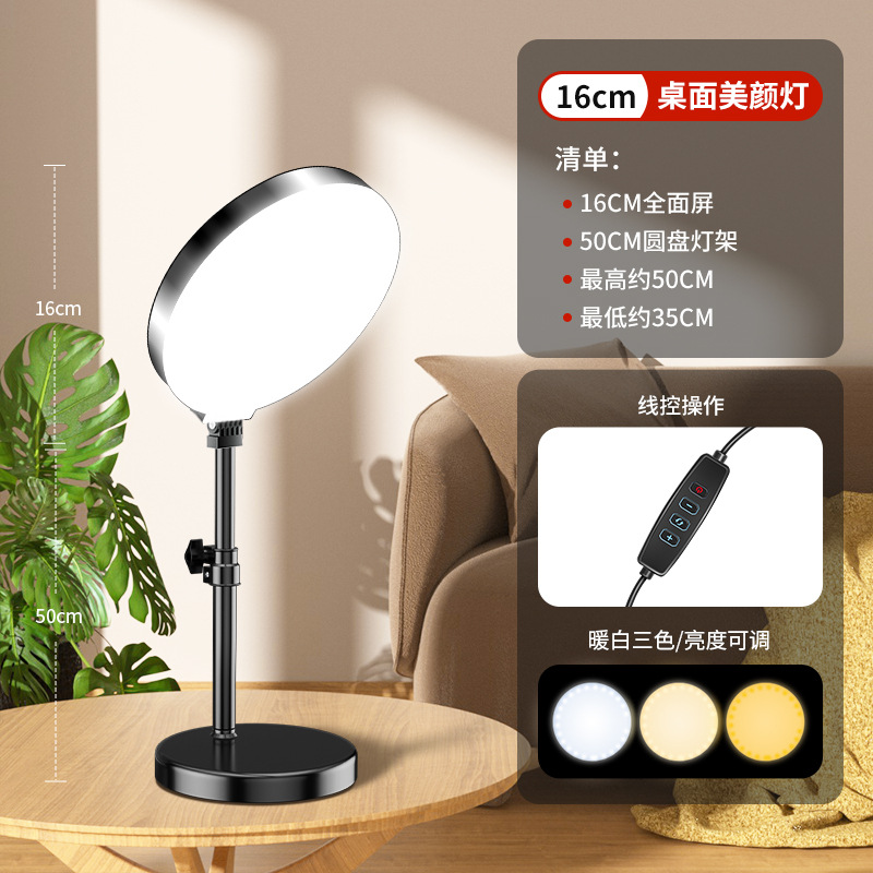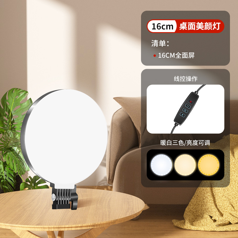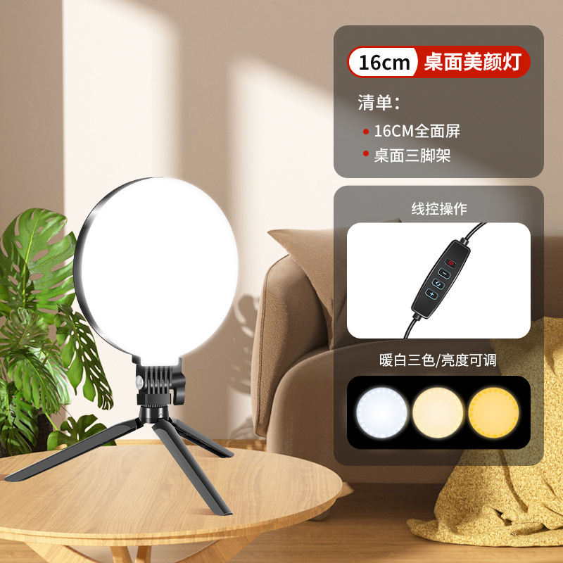 16CM 전체 화면 필 라이트 라운드 전체 화면 경계선없는 데스크탑 촬영 휴대 전화 셀카 라이브 방송 필 라이트 세트