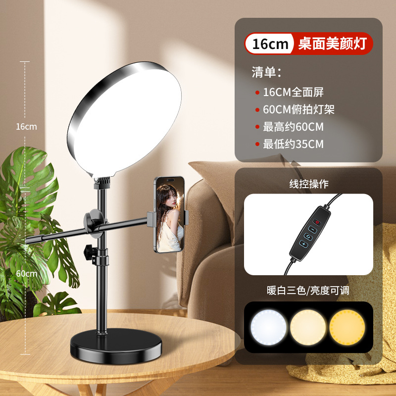 • 16CM 전체 화면 조명 + 데스크탑 삼각대