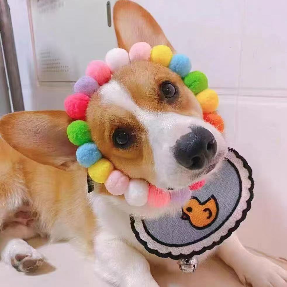 고양이 칼라 컬러 모피 공 귀여운 개 목 반지 차이 개 코기 목 목걸이 인터넷 연예인 애완 동물 사진 보석