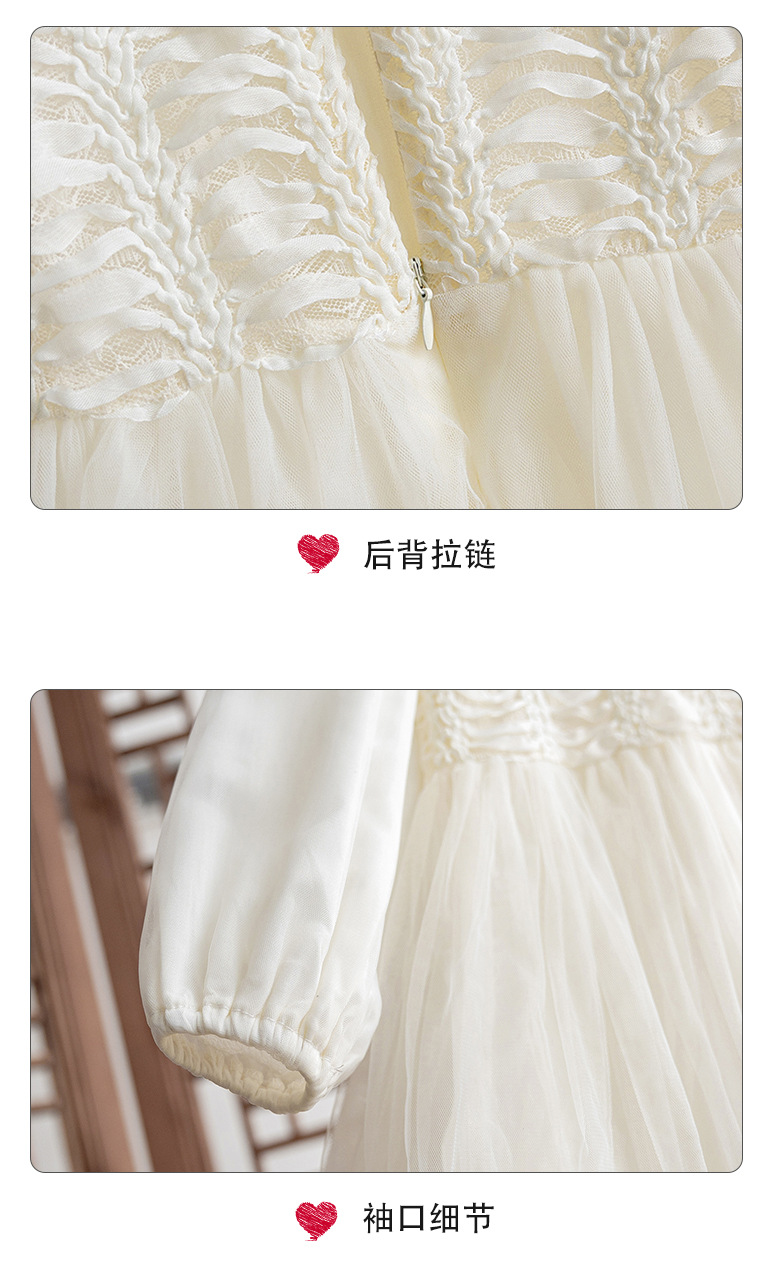 • 라이트 살구 레이어드 랜턴 슬리브 거즈 스커트