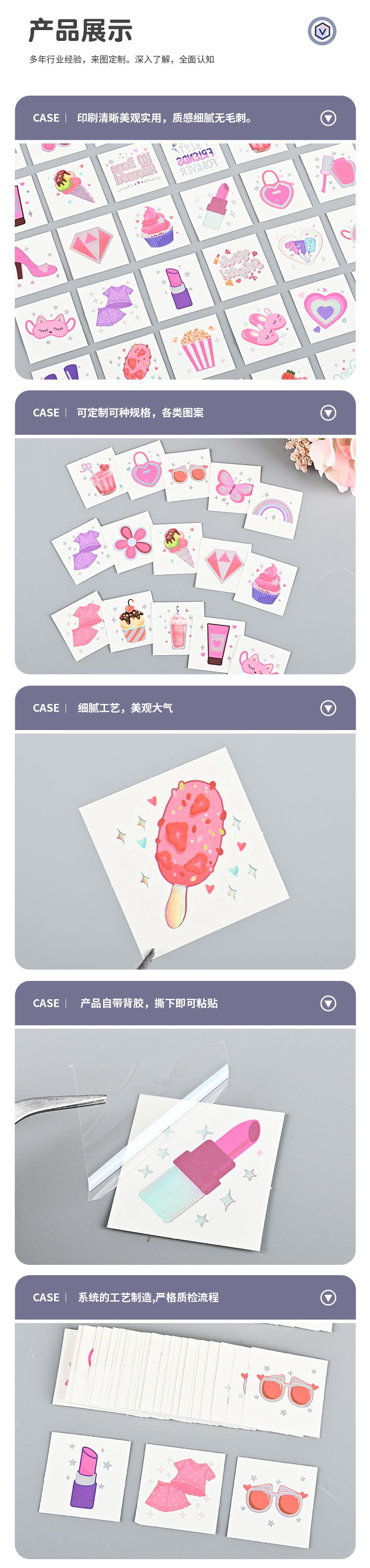 대외 무역 국경 미니 컬러 문신 스티커 맞춤형 소녀 립스틱 선글라스 디저트 섹시한 하이 엔드 문신 스티커스토어 가기