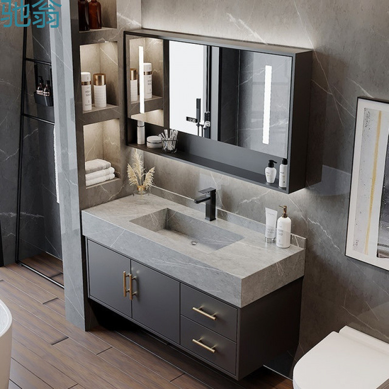 Yf3 욕실 캐비닛 현대 간단한 록 보드 통합 워시 분지 세면기 캐비닛 조합 빛 럭셔리 화장실 세면대