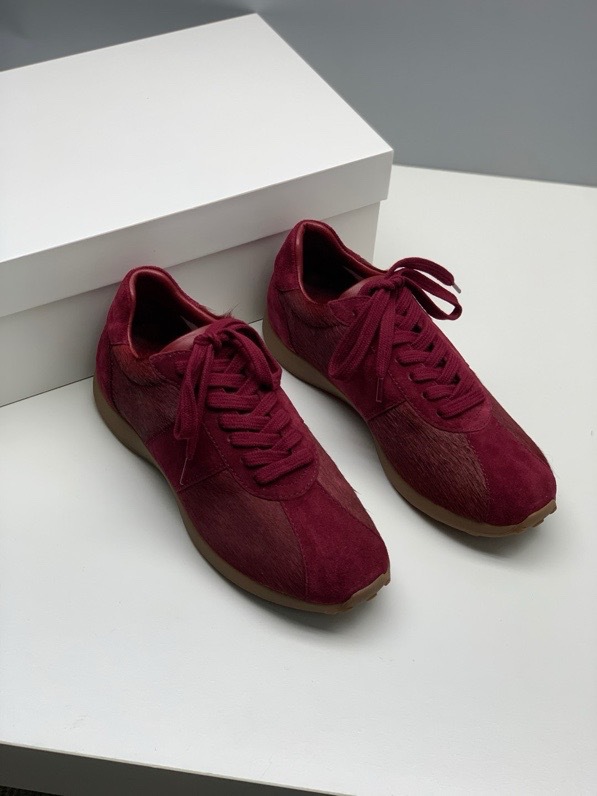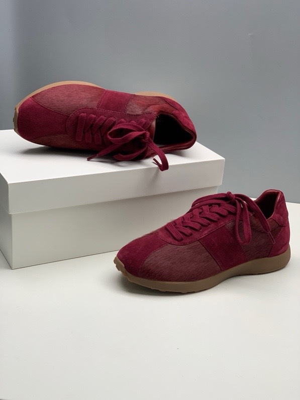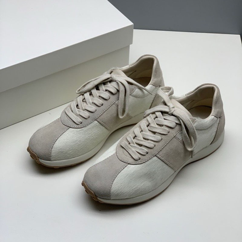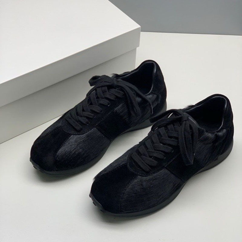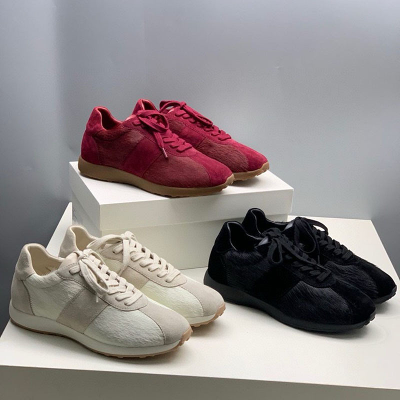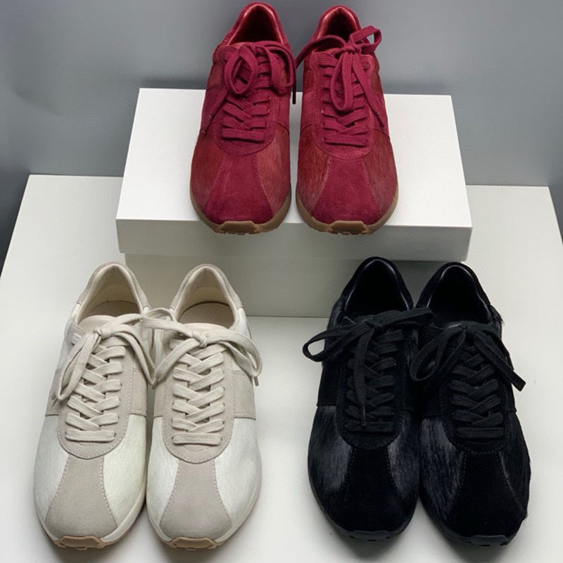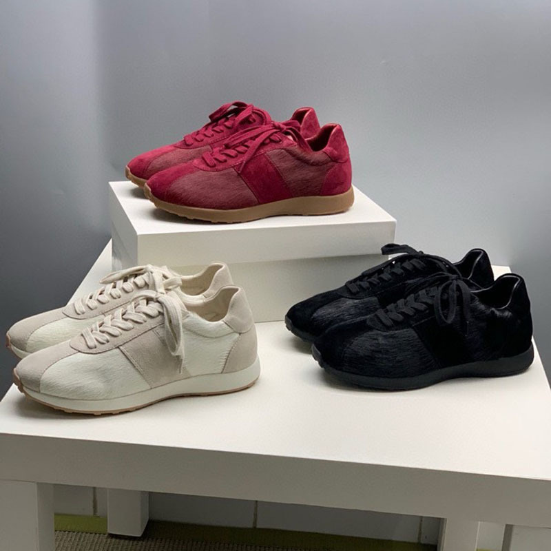 편안한 2025 이른 봄 새로운 여성 말 모피 스웨이드 스티칭 레이스 업 운동화 스포츠 캐주얼 독일 훈련 신발