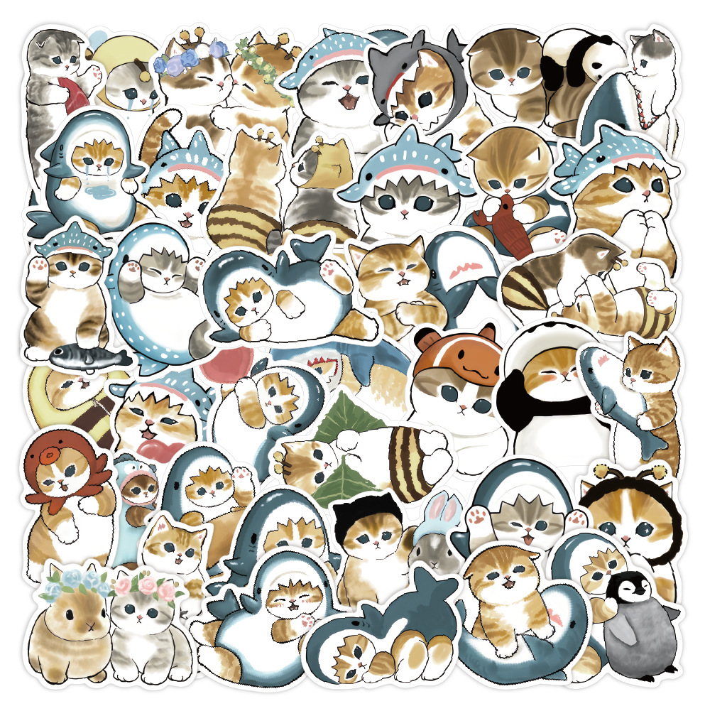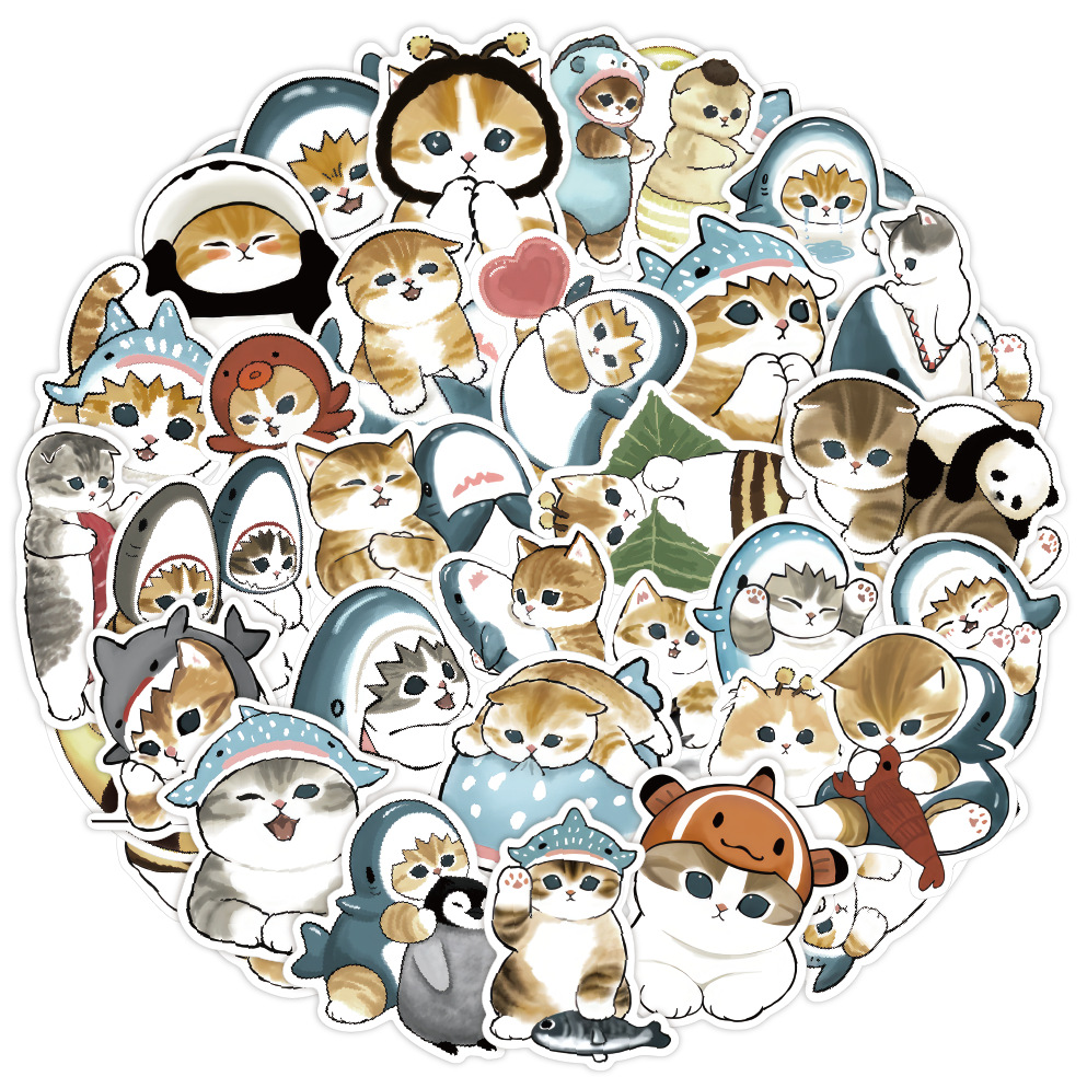 50 상어 고양이 스티커 귀여운 만화 고양이 낙서 스티커 모바일 스케이트 보드 수하물 워터 컵 장식 스티커
