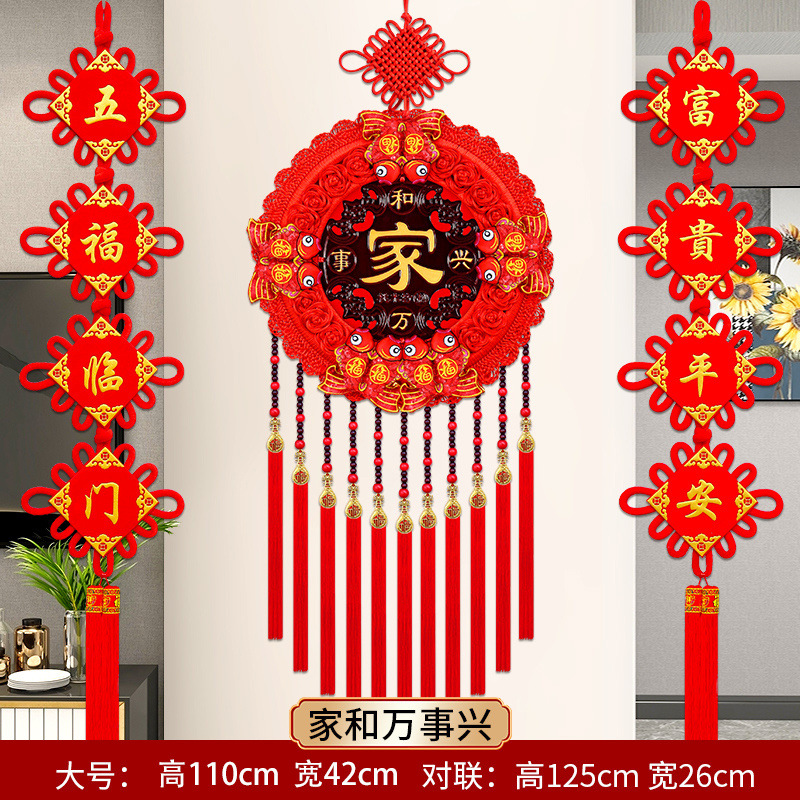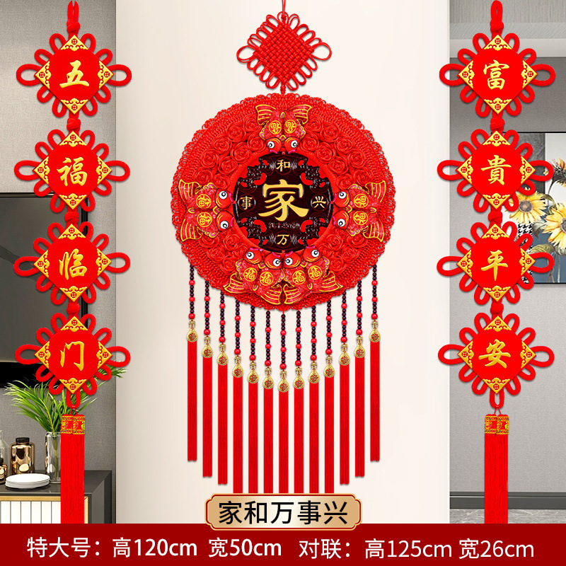 새로운 복숭아 나무 중국 매듭 펜던트 라운드 큰 행운의 캐릭터 거실 TV 벽 럭키 타운 하우스 이동 새해 봄 축제
