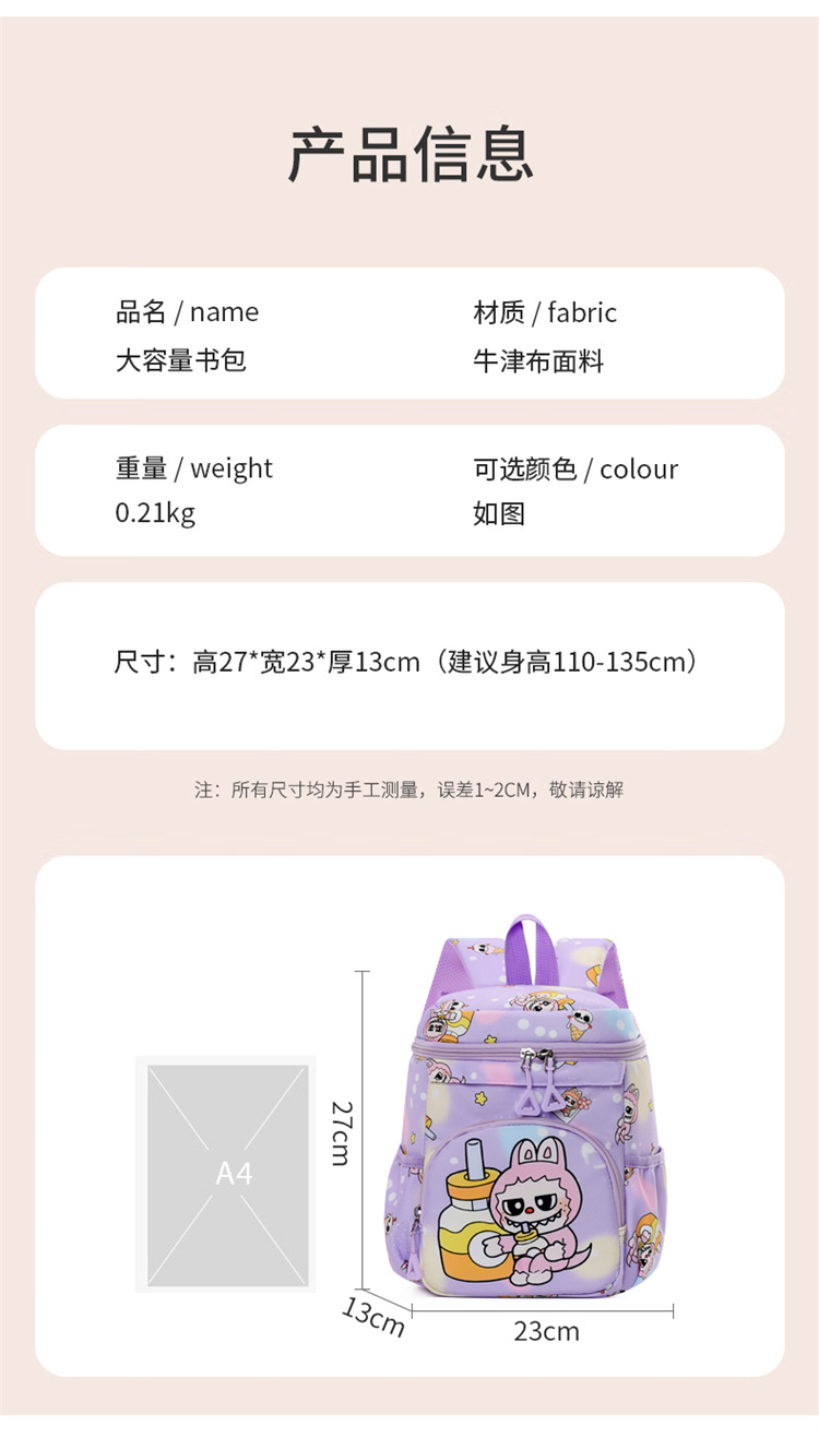 새로운 어린이 귀여운 랍부 유치원 학교 가방 만화 올 매치 야외 스낵 배낭 작은 클래스 3-5 세