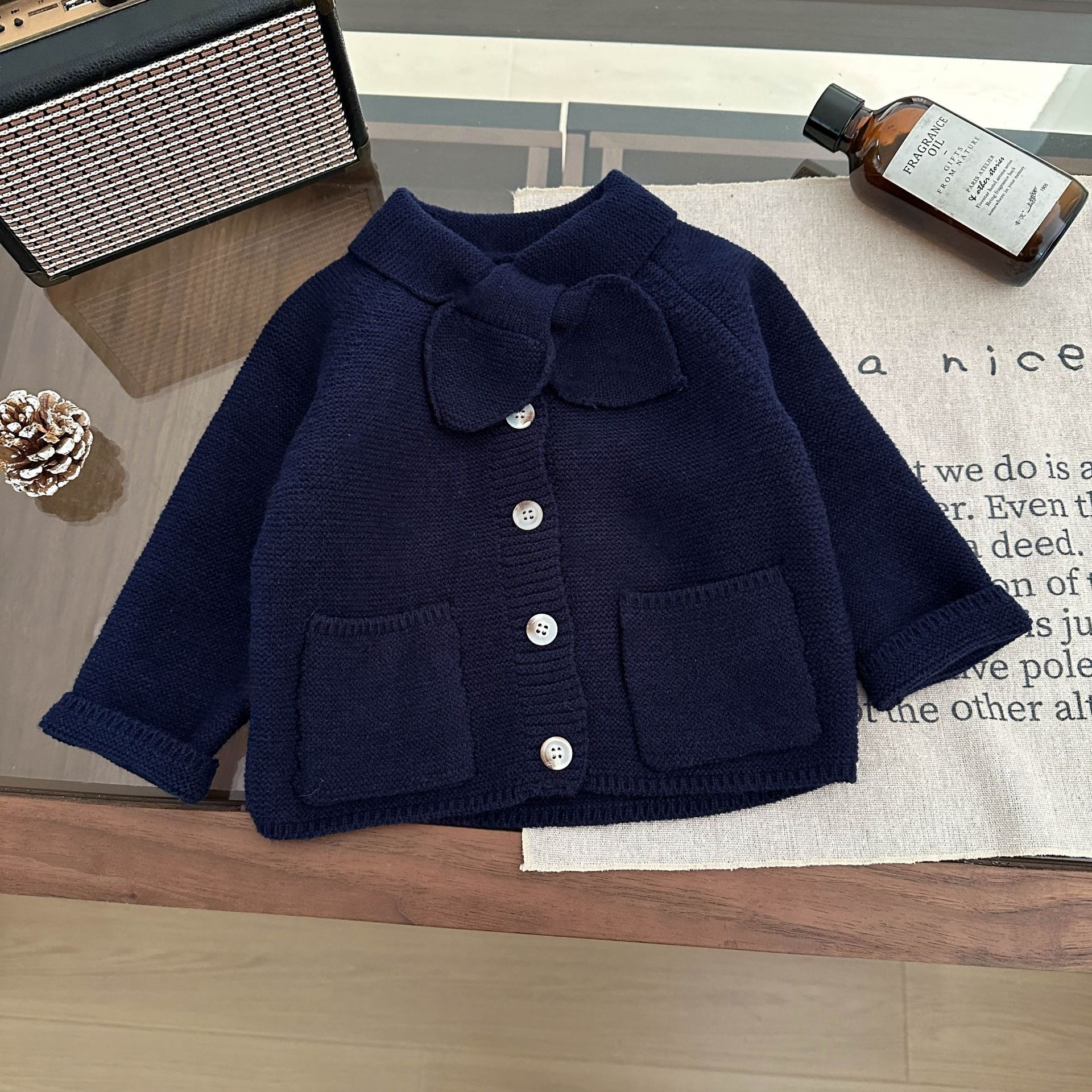 어린이 스웨터 2025 봄 새로운 서양 스타일 아기 소년과 소녀 활 스카프 칼라 니트 스웨터 올 매치 트렌디 카디건스토어 가기