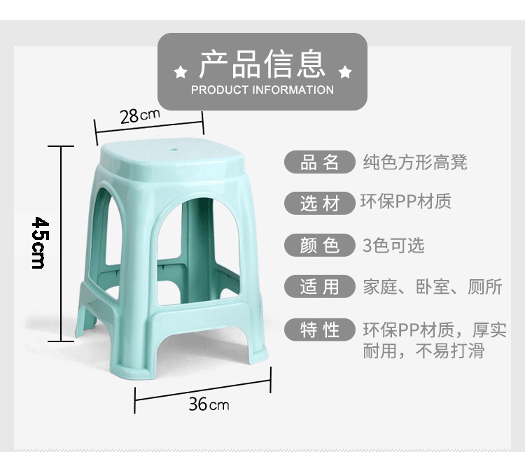 플라스틱 의자 가정용 두꺼운 거실 높은 의자 다이닝 테이블 고무 의자 스퀘어 벤치 레드 상업용 식당 추가 두꺼운 9-벨벳스토어 가기