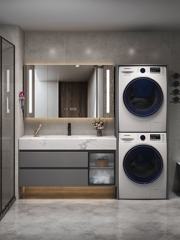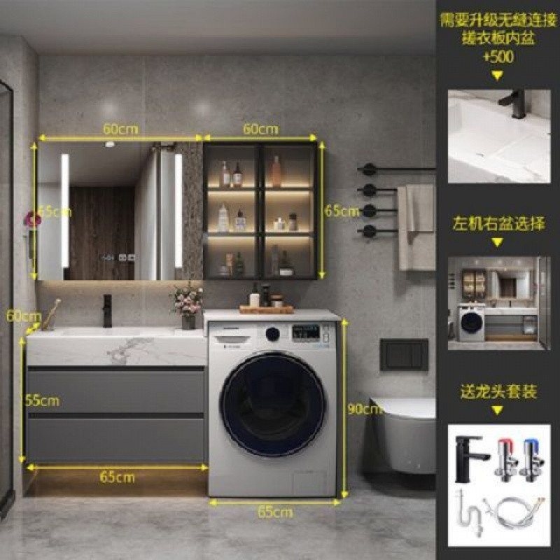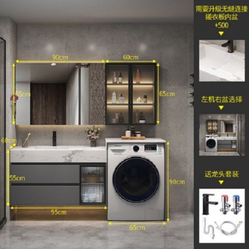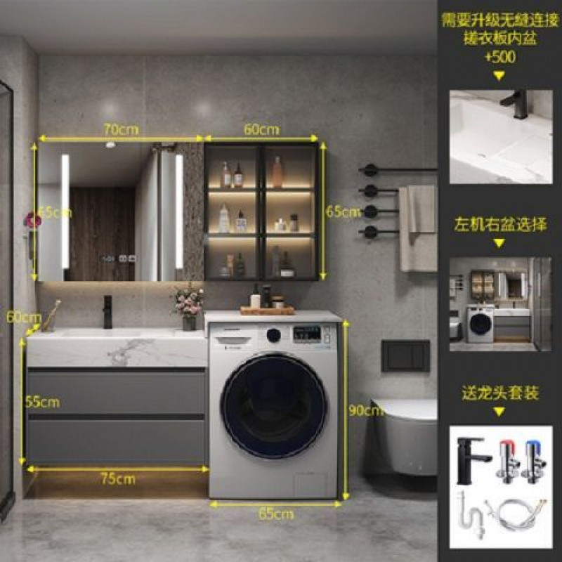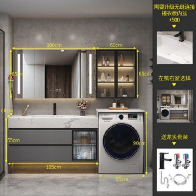 Yf3 현대 빛 럭셔리 솔리드 우드 통합 지능형 욕실 세탁기 캐비닛 통합 드럼 세탁기 캐비닛 워시 분지