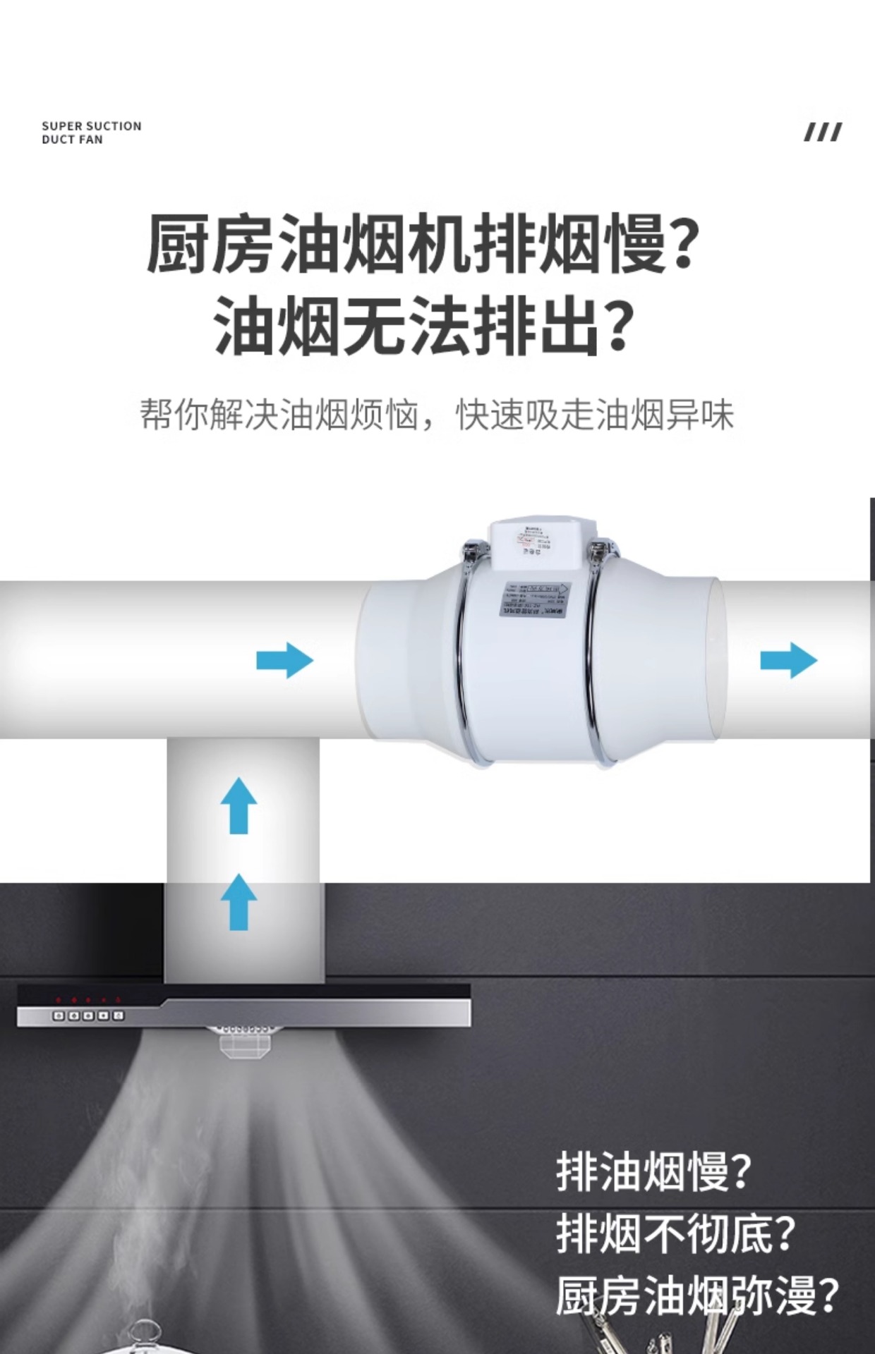 덕트 배기 팬 강력한 침묵 가압 배기 팬 가정용 화장실 환기 주방 레인지 후드 배기 팬