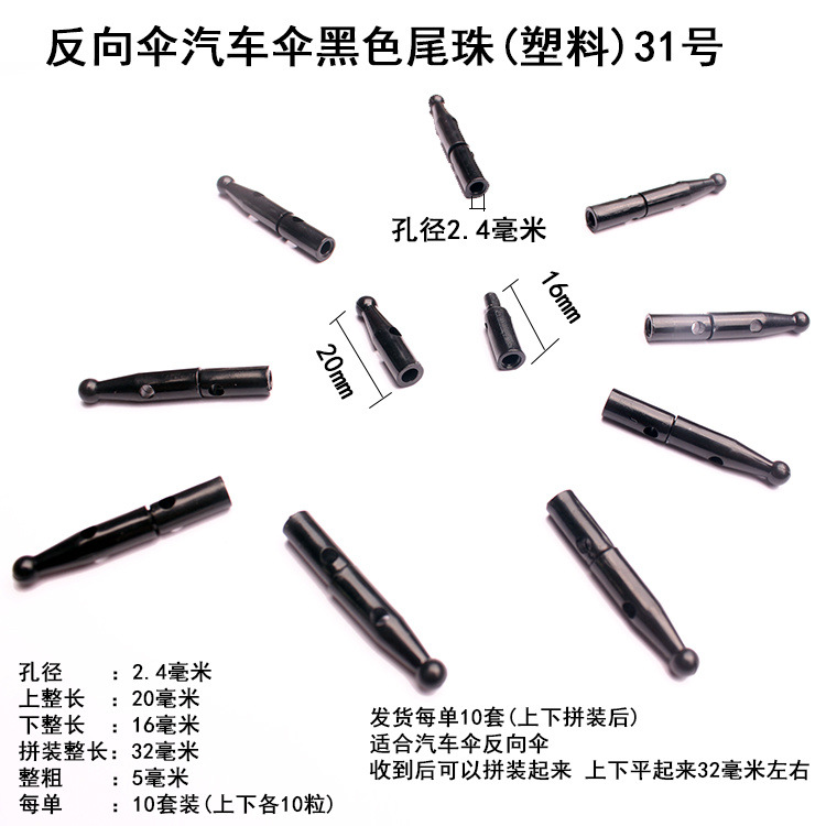 • 검정색 플라스틱 역방향 우산 꼬리 구슬 10세트