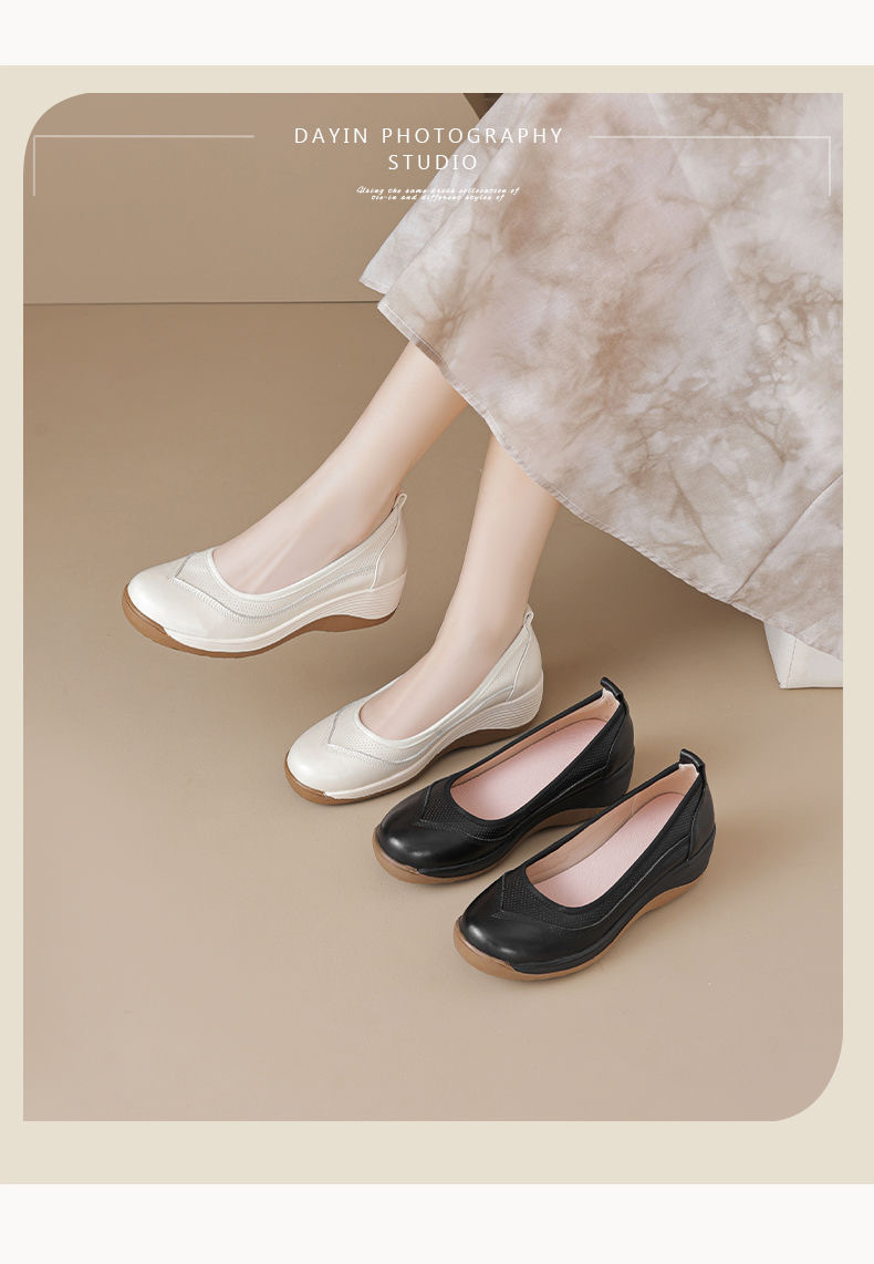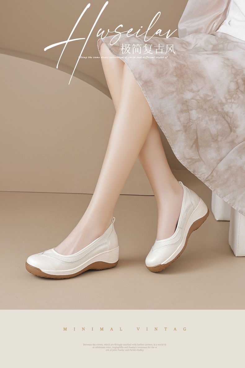 게으른 남성용 플랫폼 신발 여성용 부드러운 가죽 둥근 발가락 슬립 온 신발 2025 새로운 가을 캐주얼 하이힐 작은 가죽 신발스토어 가기
