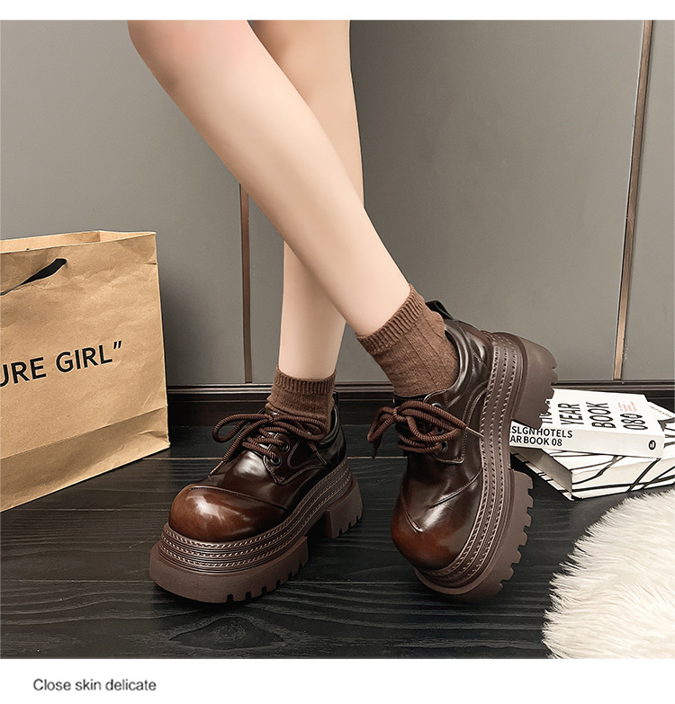레트로 영국 스타일 로퍼 2025 이른 봄 새로운 스타일 플랫폼 바닥 두꺼운 바닥 모든 색상 광택 가죽 신발 여성 신발 증가