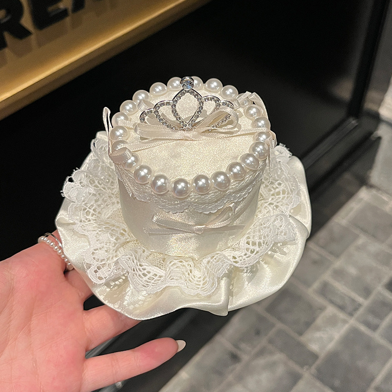 연인 머리 생일 파티 케이크 머리핀 여성 레이스 사이드 덕빌 클립 크라운 진주 헤어 액세서리