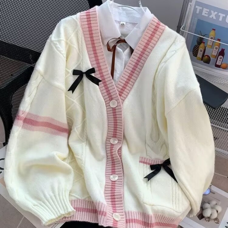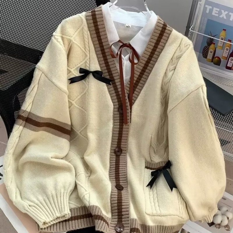 활 스웨터 코트 여성의 가을과 겨울 루즈 2025 새로운 스타일 게으른 스타일 디자인 나이를 줄이는 일본 니트 카디건스토어 가기