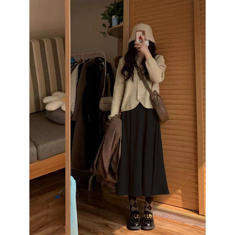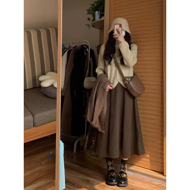 헵번 스타일 모직 스커트 여성의 가을과 겨울 A 라인 스커트 높은 허리 슬리밍 단색 겨울 스커트 중간 길이의 우산 스커트스토어 가기