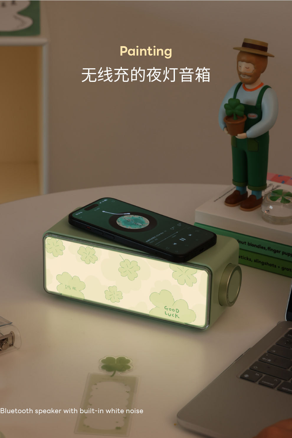 화경 야간등 무선 충전 스피커 화이트 노이즈 조명 페인팅 데스크탑 장식품 블루투스 소형 스피커 분위기 조명