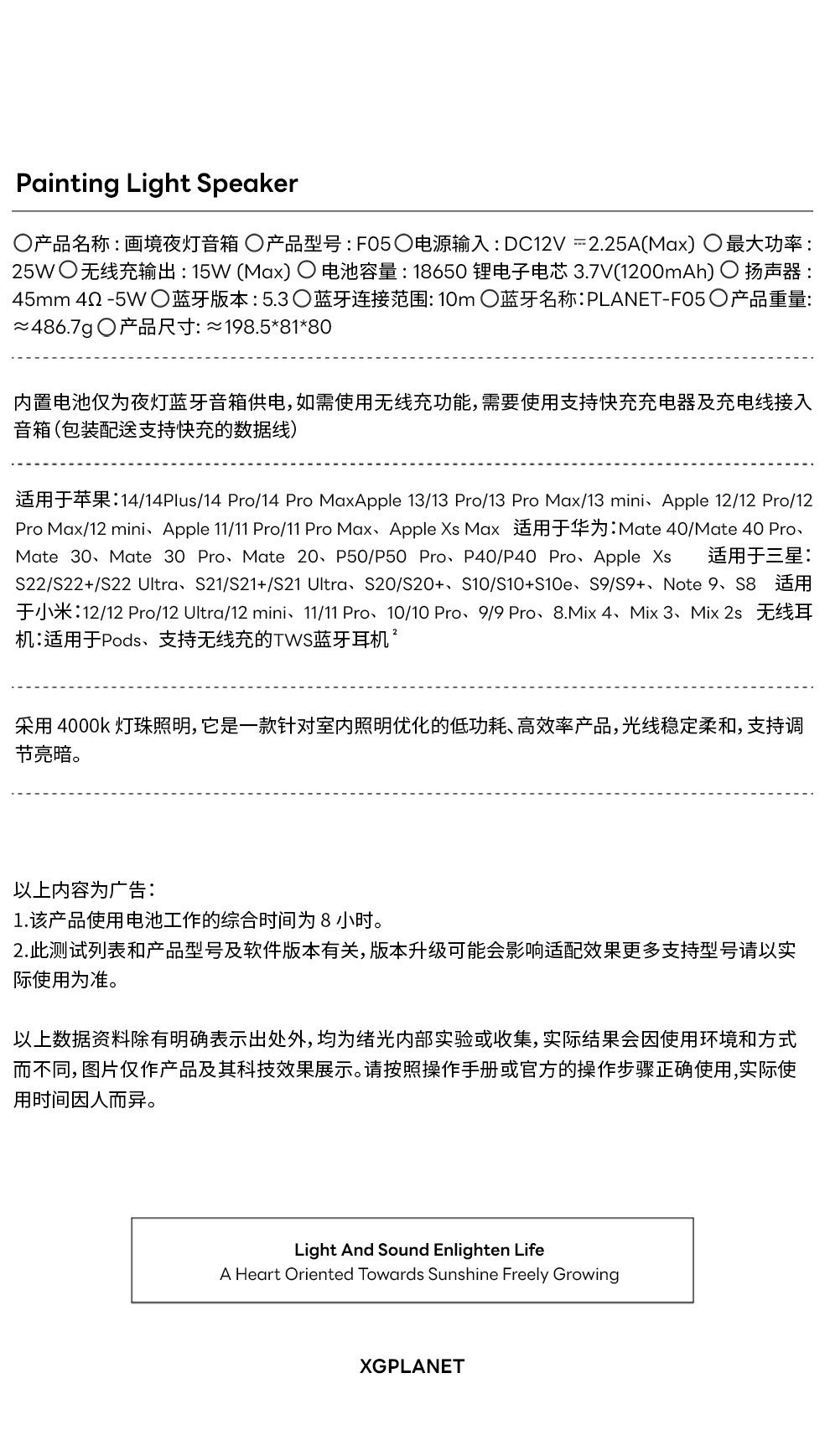 产品名称:画镜夜灯音箱
