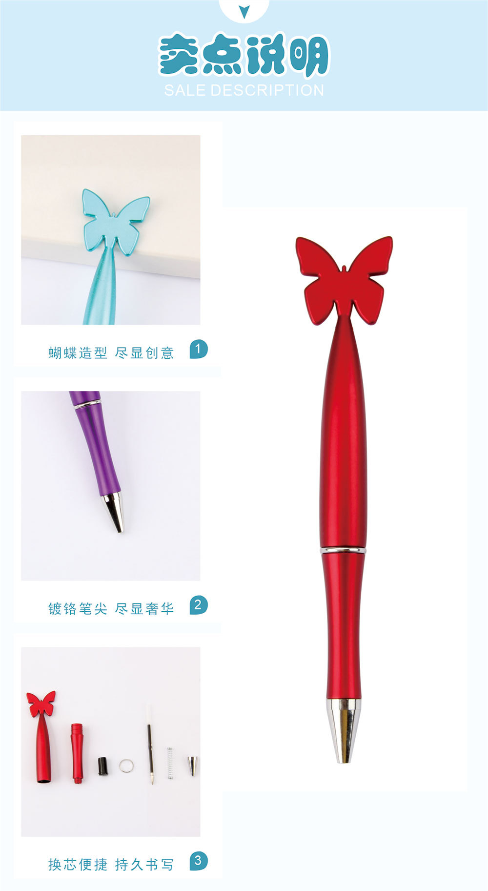 나비 볼펜 창조적 인 나비 스타일링 펜 회전 코어 국경 친구 선물 관리 학생 문구
