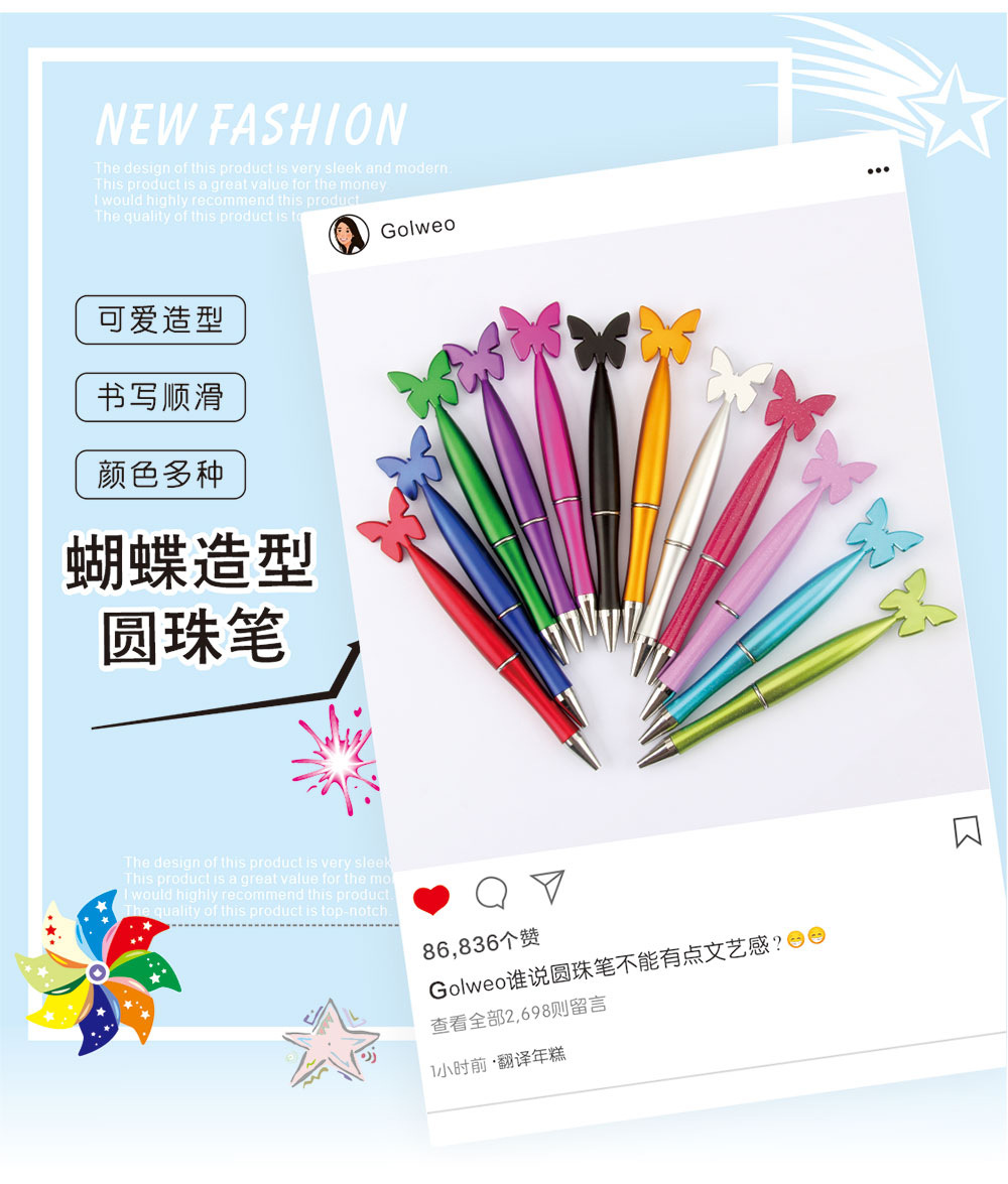 나비 볼펜 창조적 인 나비 스타일링 펜 회전 코어 국경 친구 선물 관리 학생 문구스토어 가기
