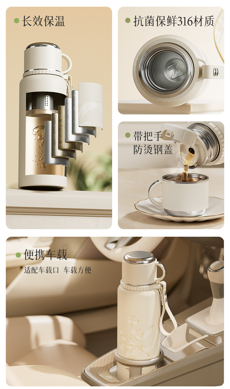 폭발성 316 머그잔 대용량 여성용 차 분리 버블 컵 2024 새로운 대형 보온병 컵