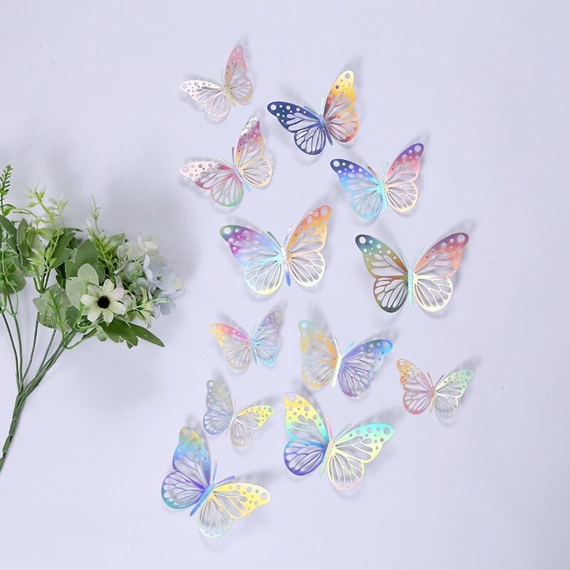 3 차원 나비 다채로운 장식 금속 질감 중공 종이 거실 침실 냉장고 스티커 장식 AliExpress 세대 헤어