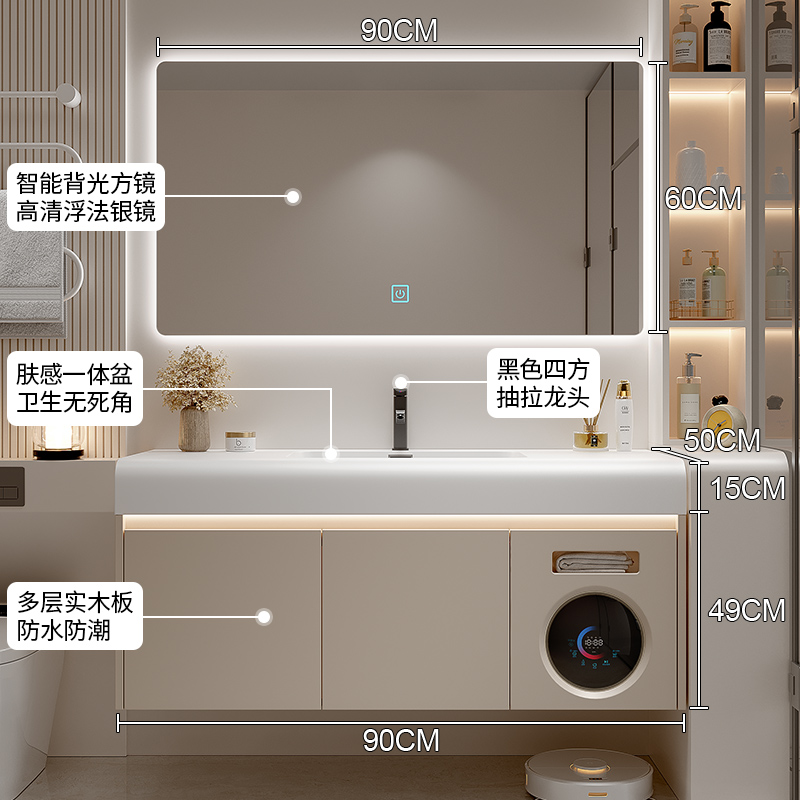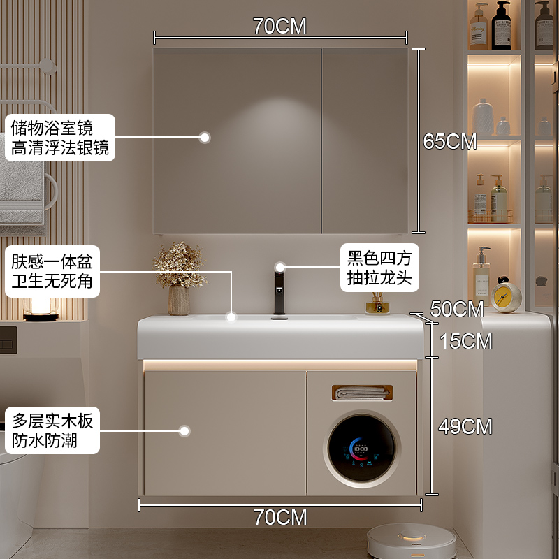 새로운 간단한 피부 감각 올인원 분지 욕실 캐비닛 조합 세척 및 건조 올인원 기계 욕실 세척 테이블 9 벨벳스토어 가기