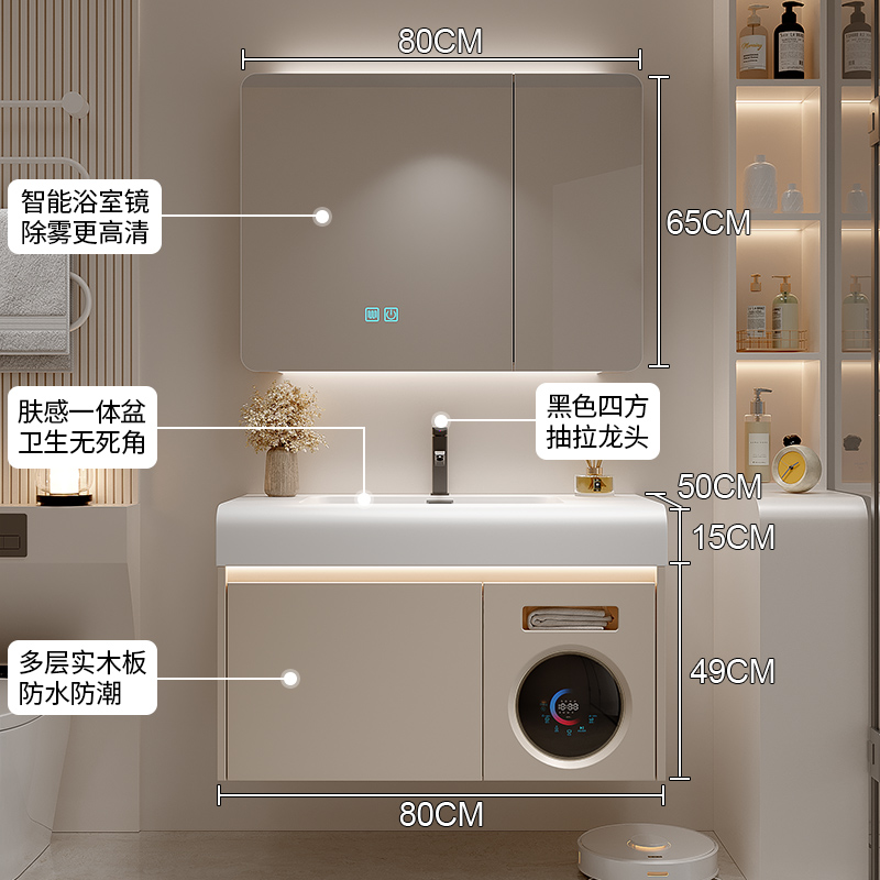 • S3 Kelina 둥근 모서리 스마트 백라이트 거울 캐비닛 80cm + 세탁 및 건조기 일체형 기계
