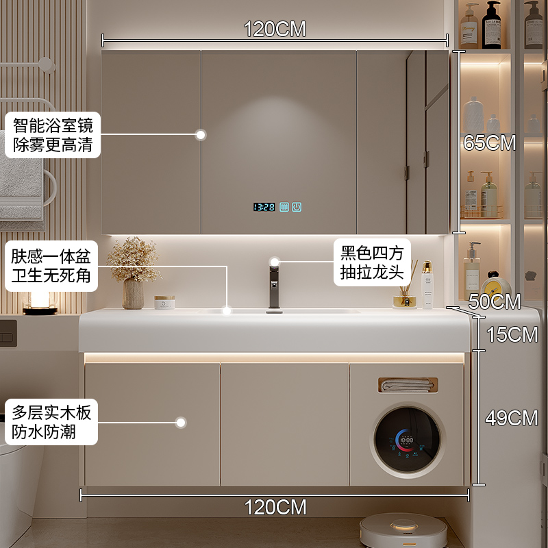 • S3 Kelina 둥근 모서리 스마트 백라이트 거울 캐비닛 120cm + 세탁 및 건조기 일체형 기계