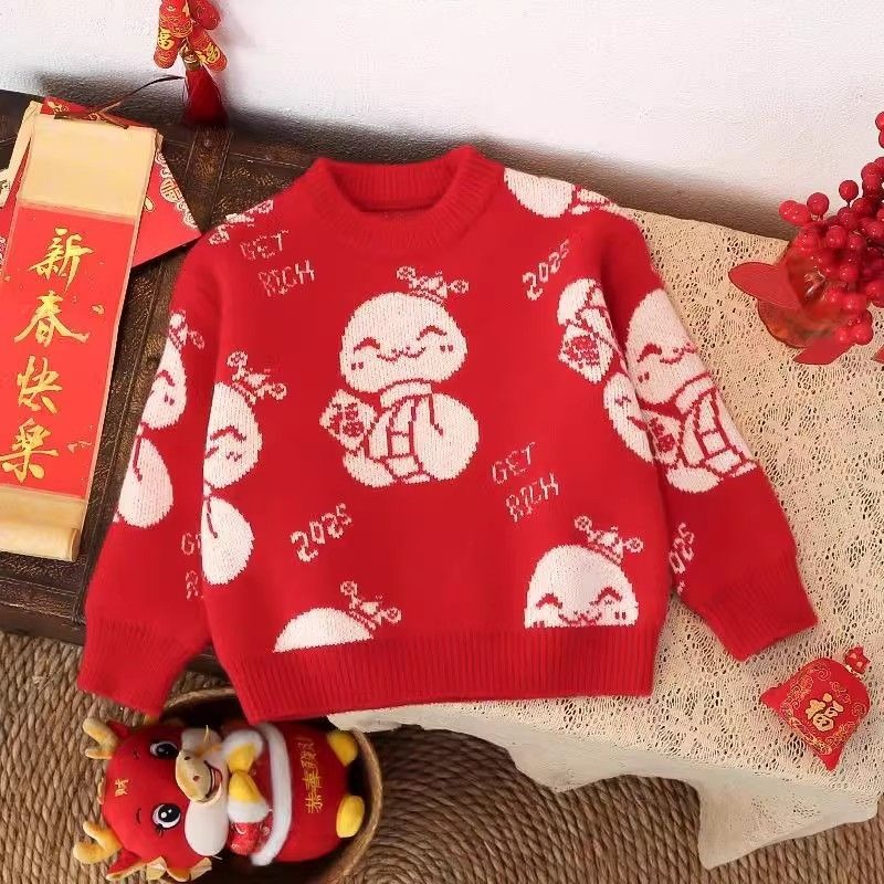 하이 퀄리티 설날 봄 축제 새 여아 니트웨어 스웨터 겨울 따뜻한 중대형 어린이 풀오버 두껍게베이스 셔츠