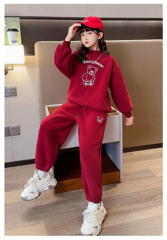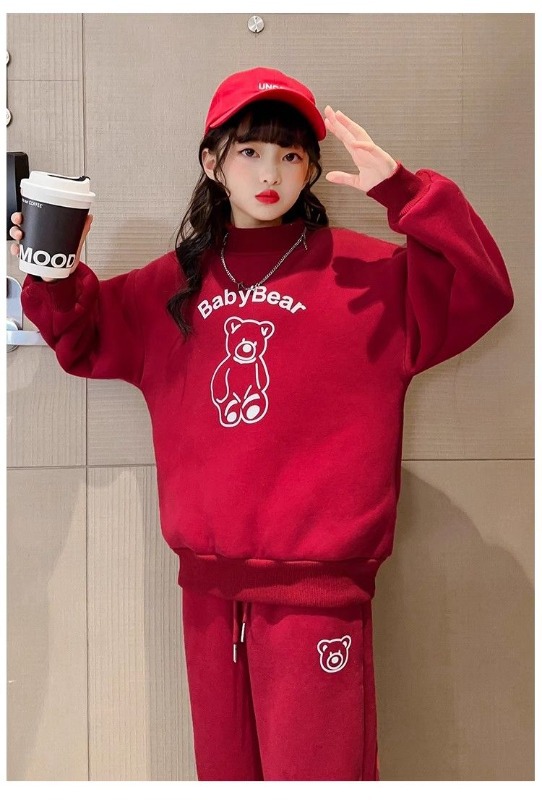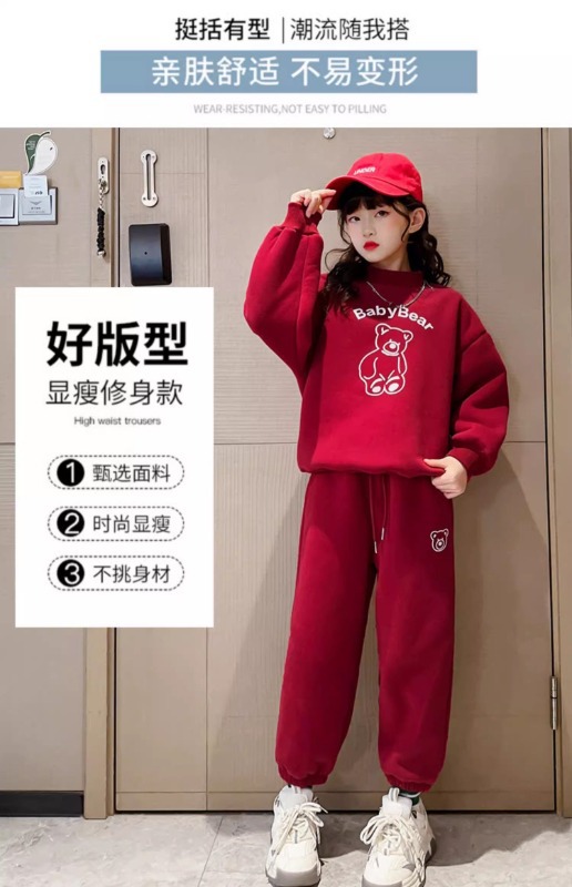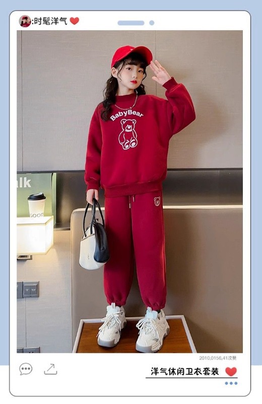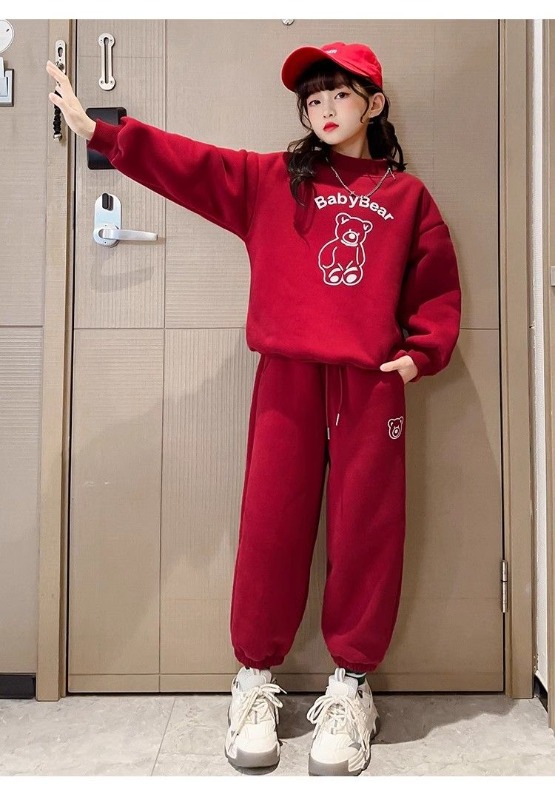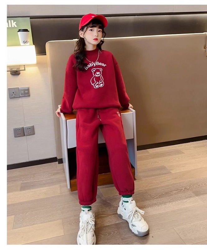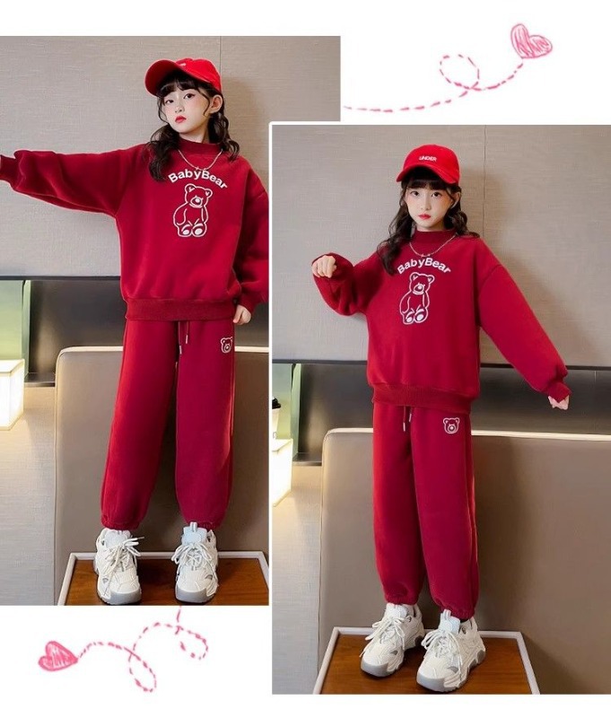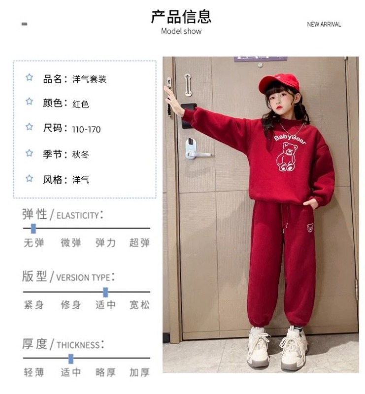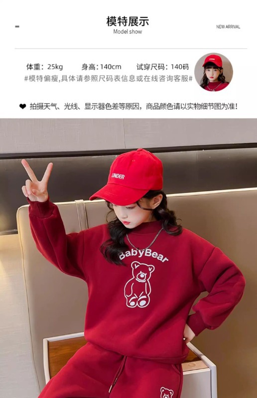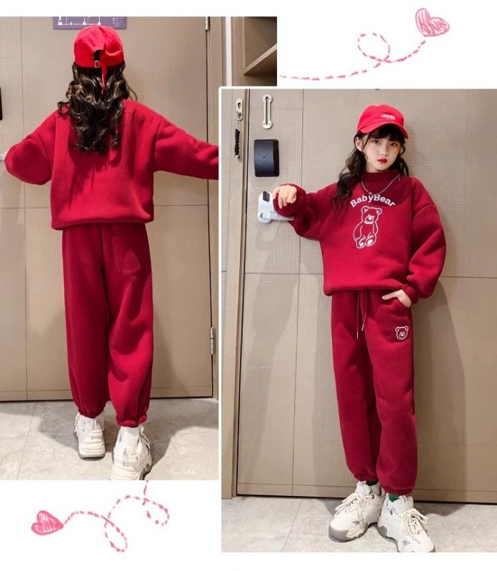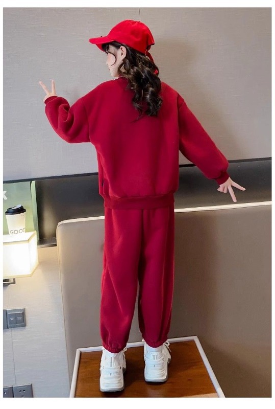 여자 가을 겨울 세트 2025 새로운 서양식 빨간 스웨터 새해 어린이 유행 신년 옷스토어 가기