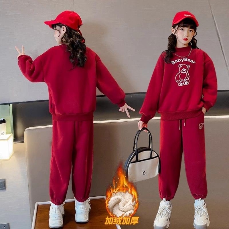 여자 가을 겨울 세트 2025 새로운 서양식 빨간 스웨터 새해 어린이 유행 신년 옷