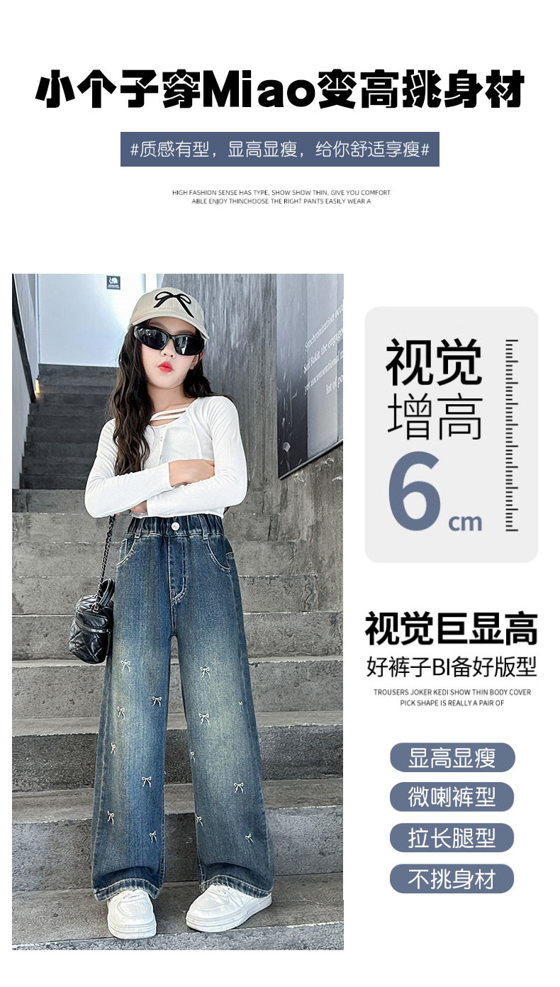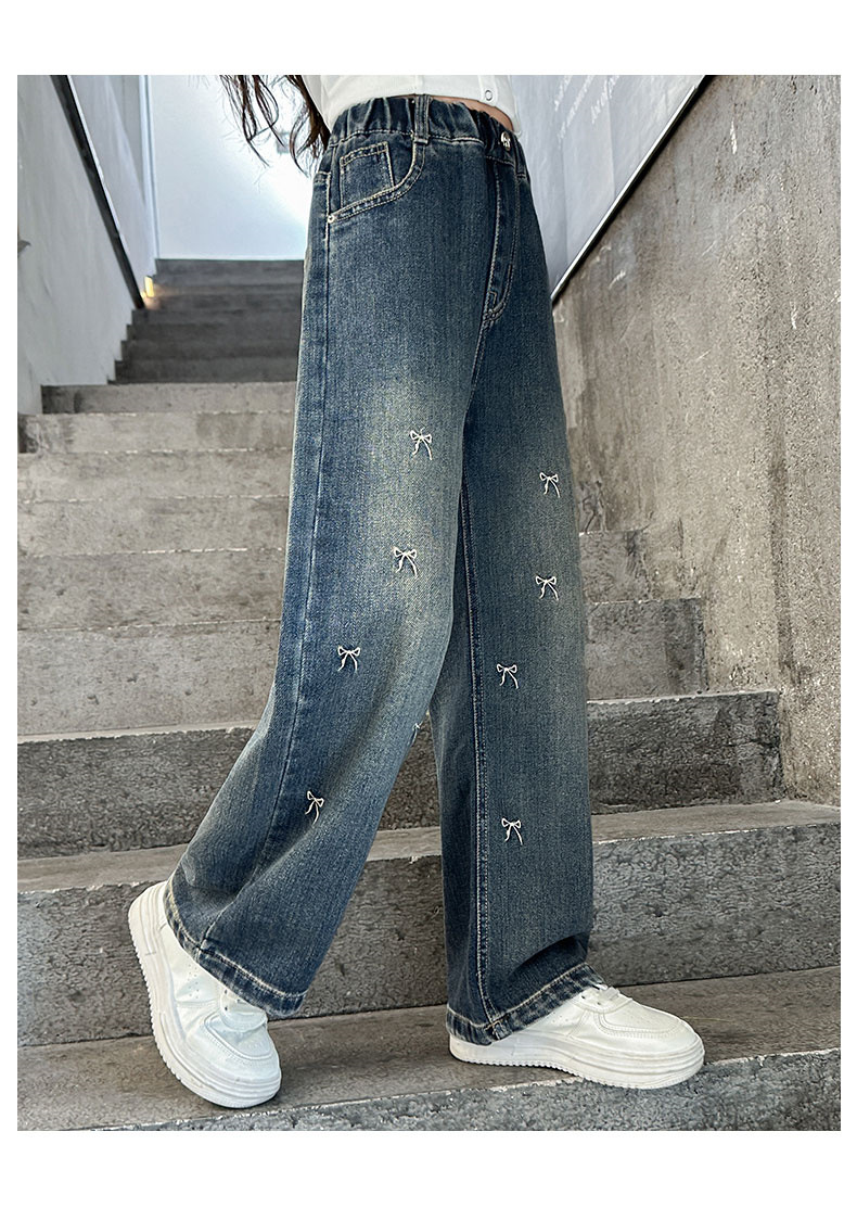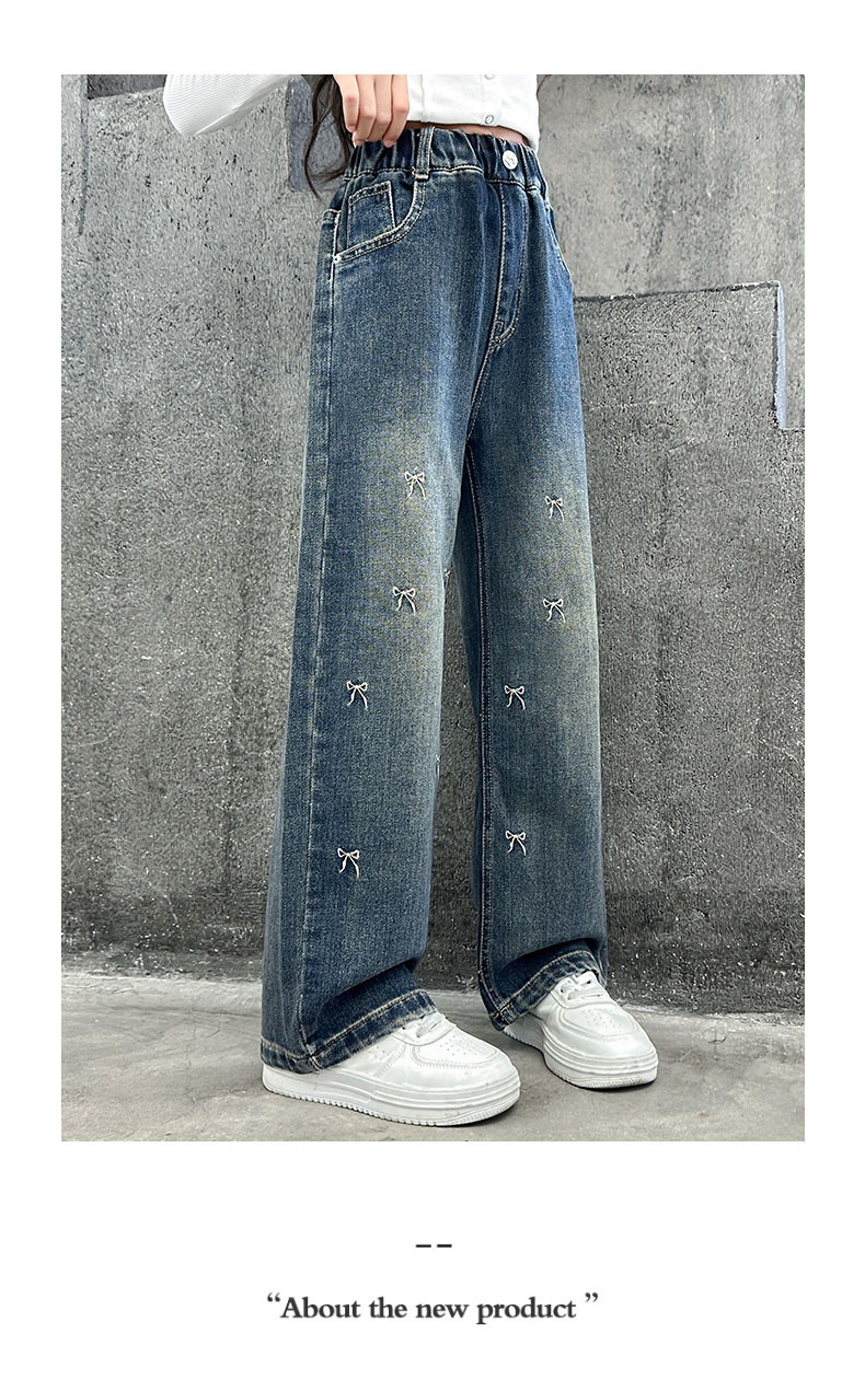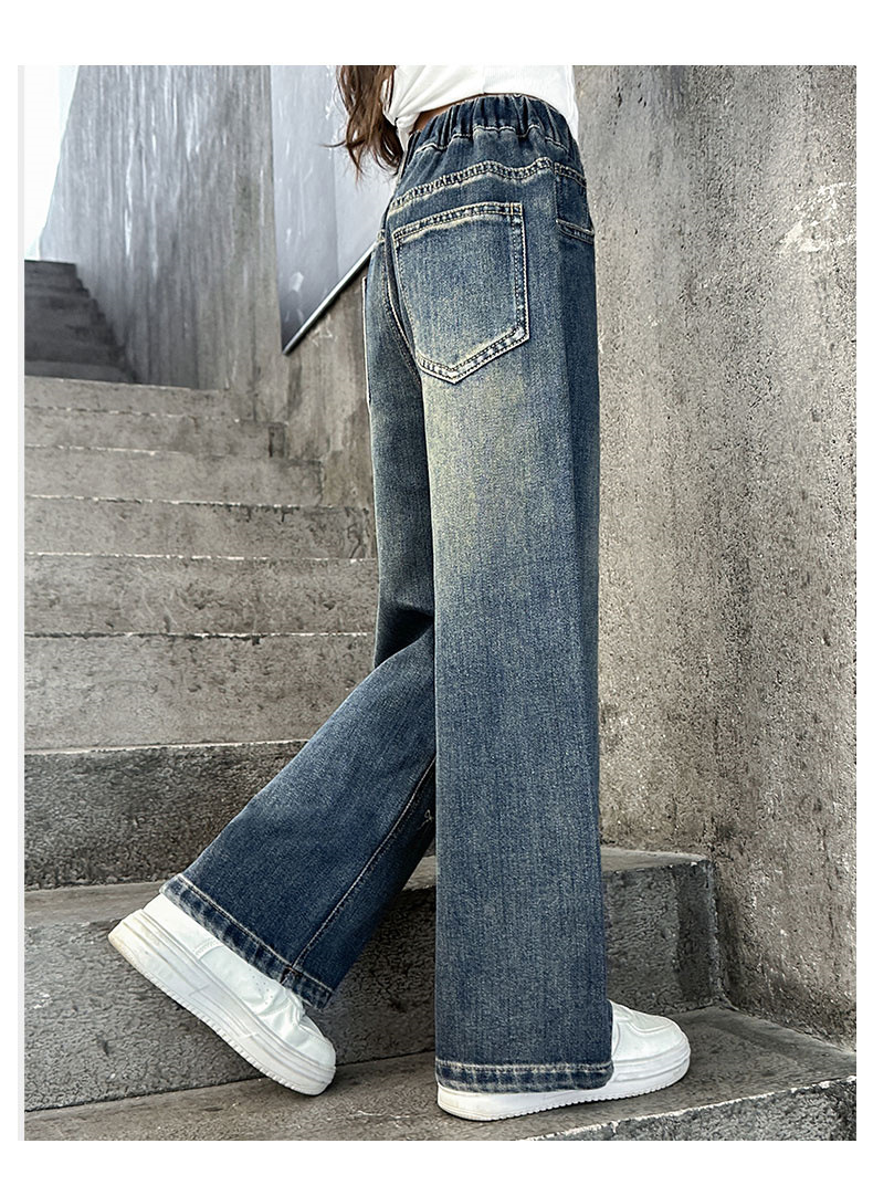 소녀 청바지 봄과 가을 2025 새로운 도착 바지 아동복 빅 보이 걸스 와이드 레그 바지 서양식 걸스 바지스토어 가기