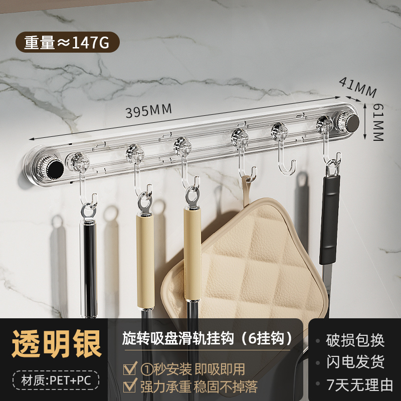 석션 컵 주방 후크 슬라이드 레일 후크 랙 펀치없는 교수형 로드 스토리지 캐비닛 도어 내부 옷걸이 세트 9 벨벳