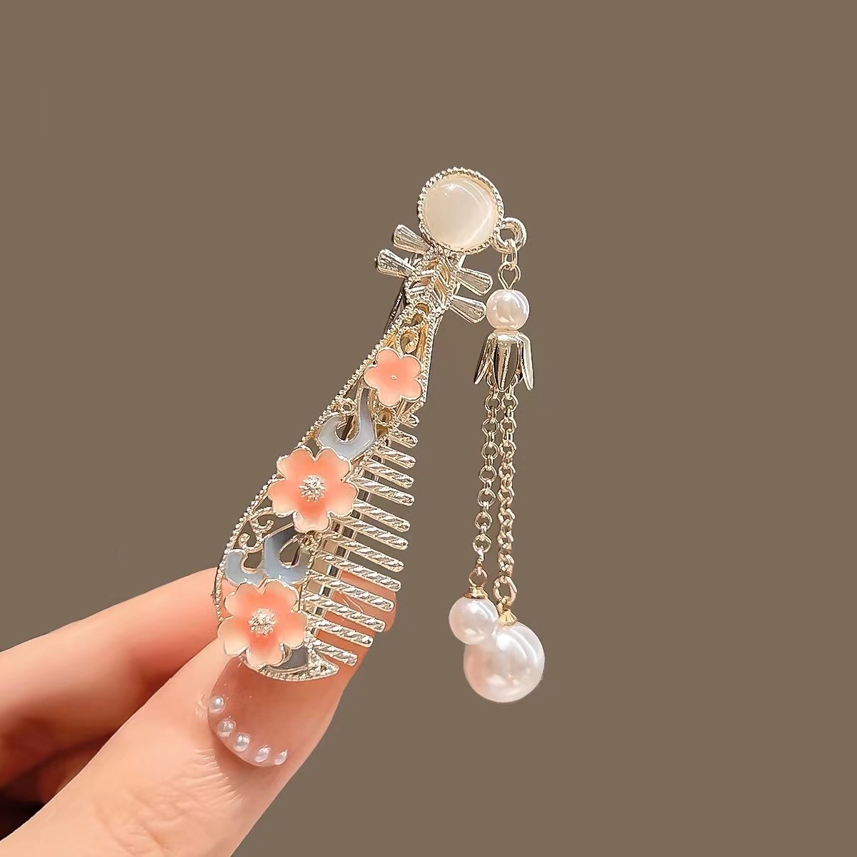 부드러운 골동품 헤어핀 새로운 중국 스타일 요정 스타일 뱅이 홀더 빈 펄 깨진 헤어핀 사이드 덕빌 홀더 헤드스토어 가기