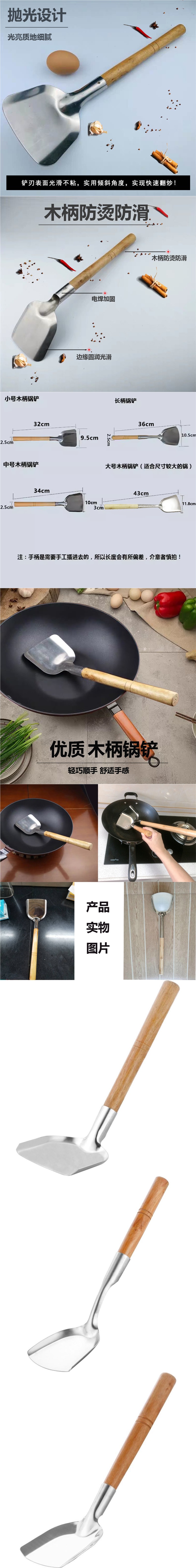 구식 스테인레스 스틸 주걱 가정용 볶음 두꺼운 주걱 볶음 숟가락 요리사 주방 용품 나무 손잡이 방목 주걱스토어 가기